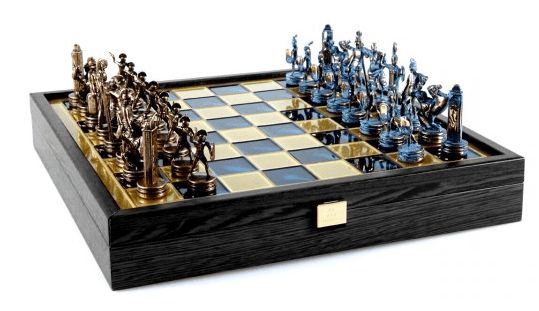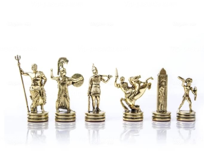 Шахматы Manopoulos Троянская война будут отличным подарком для любителя настольных игр.Славный город был яблоком раздора между двумя могущественными богами. Бог моря Посейдон и богиня мудрости Афина хотели, чтобы город был назван в их честь. Божественный конфликт был жестоким, поэтому Зевс объявил, что каждый бог должен сделать предложение гражданам. Посейдон поднял свой трезубец и ударил по скале Акрополя, откуда хлынула морская вода. «Он предупредит вас о приближающихся штормах. Ваш город покорит моря », - сказал он. Афина преклонила колени и коснулась земли, на которой начало расти оливковое дерево. «Для продуктов питания, масла, дерева и света. Ваш город станет символом цивилизации ». Несмотря на гнев Посейдона, дар Афины был предпочтительнее, и с тех пор город называют Афинами. Шахматные фигуры Греческие скульпторы любили воссоздавать этот божественный конфликт в своем искусстве. Король является точной копией знаменитой статуи «Посейдон Мелосский» (2 в. До н. Э.), А королева представляет собой славную «Афину Промахос» (450 г. до н. Э., Музей Акрополя). Бронзовая эллинистическая статуя вдохновила епископа, а рыцарь - часть мраморного фасада Парфенона, скульптура Фидия. Замок является копией одной из самых замечательных аттических стел, посвященных юному Аристиону, павшему в бою. Наконец, Пешка - бронзовая статуя полностью вооруженного воина 500 г. до н. Э.
