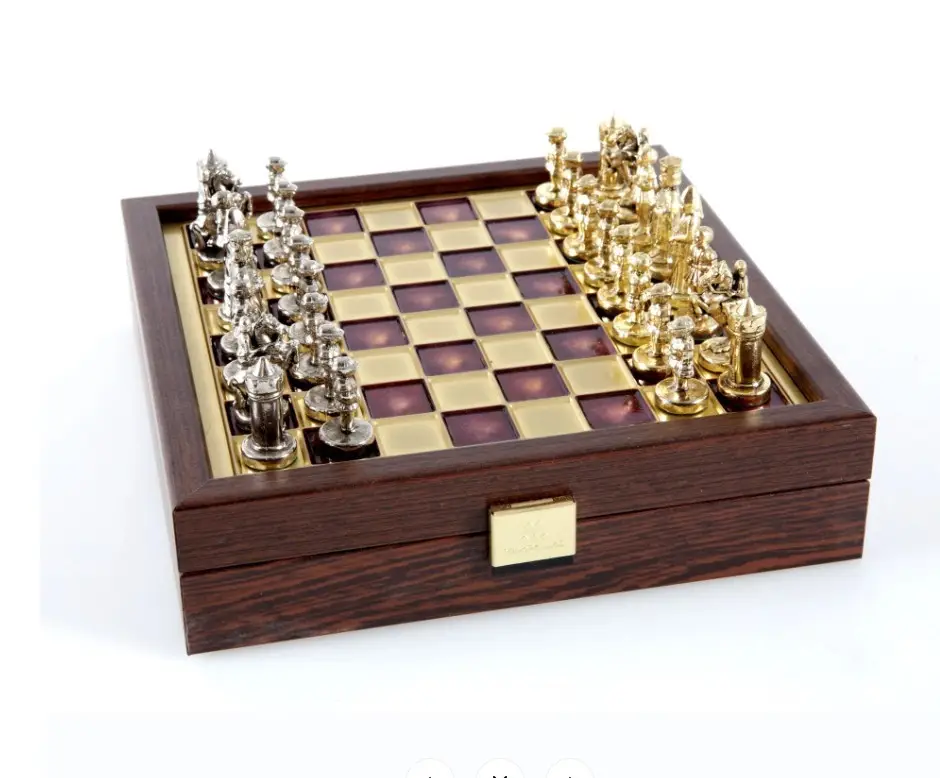 Эта миниатюрная шахматная доска — настоящий артефакт, вдохновлённый эпохой Византии. Компактный формат 20×20 см делает её удобной для путешествий, небольших пространств или личной коллекции. При этом она сохраняет фирменный стиль и качество, за которые ценят Manopoulos во всём мире.