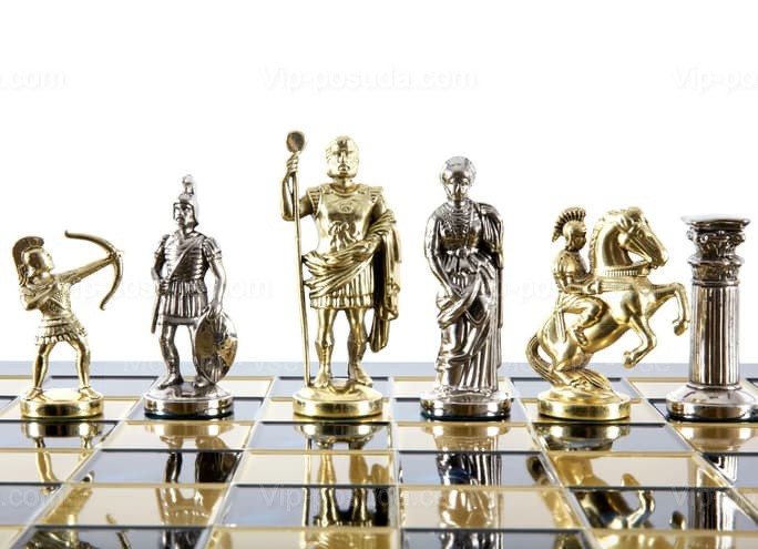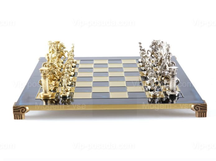 Подарочный набор шахмат выполнен в сине-золотом цвете, полированная доска с ножками уголками в виде римских колон. Фигуры стилизованы под "Греко-римскую войну". Отличный подарок для руководства, бизнесмена, друга или коллекционера редких и красивых вещей.На поле боя и за его пределами стрельба из лука была очень востребованным навыком. Помимо охоты, лучники были легендарными защитниками крепостных стен города и прикрывали огонь во время битвы. Боги-близнецы Аполлон и Артемида были мастерами стрельбы из лука и защитниками лучников. Филоктет был одним из самых известных лучников, носивших мифический лук Геракла. Шахматные фигуры Этот период характеризовал ожесточенные локальные и международные войны. Их свирепость символизируется агрессивностью Лучника (пешки) и Коня. Поза Короля и Королевы указывает на их неоспоримое лидерство. Епископ показывает свое внимание к неизбежной битве. Наконец, Замок представляет собой репродукцию колонны, основного символа архитектурного стиля того периода.