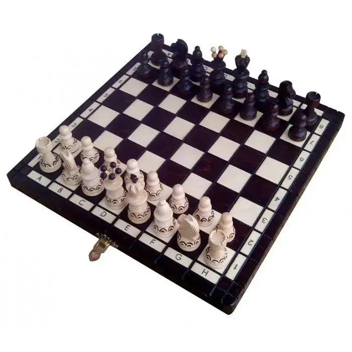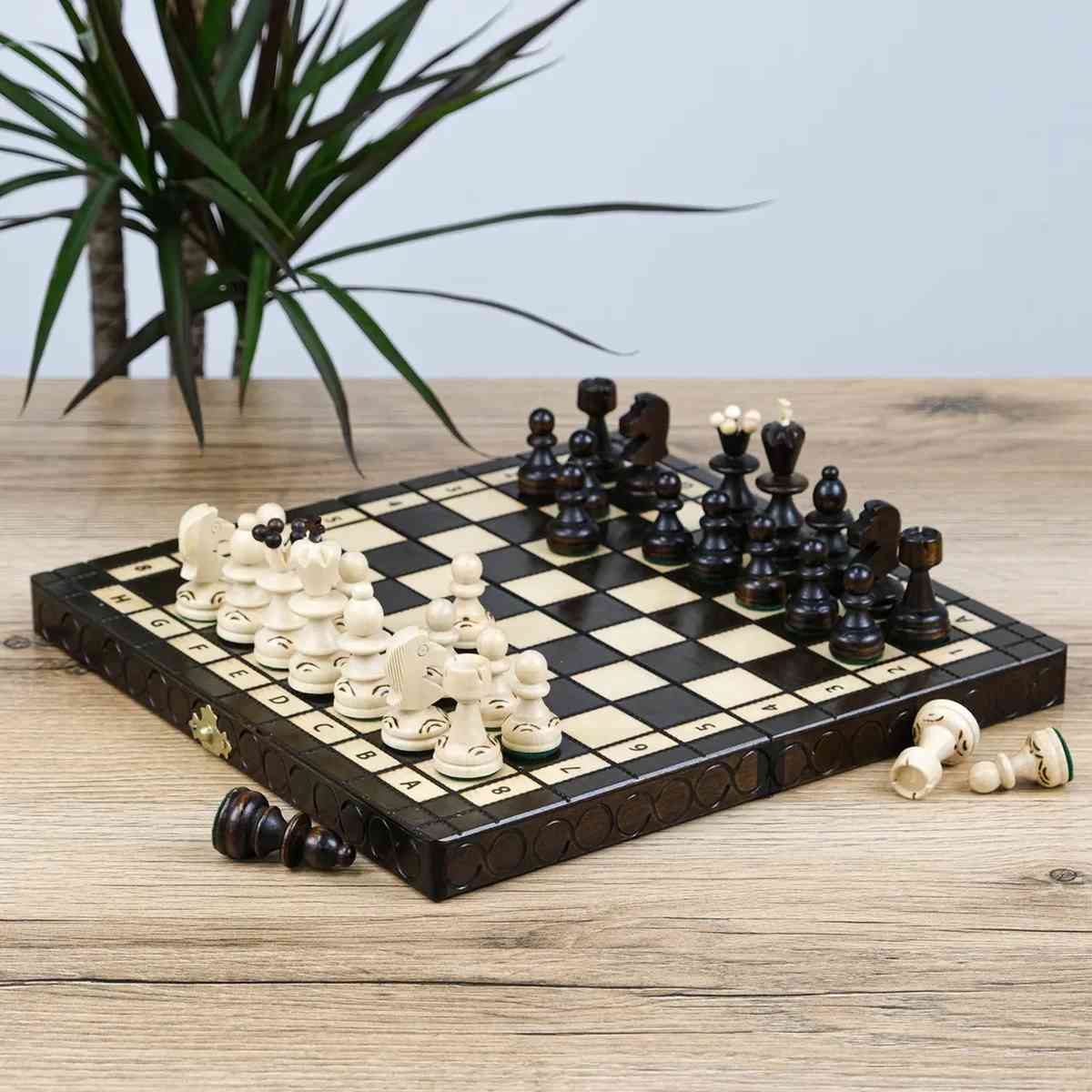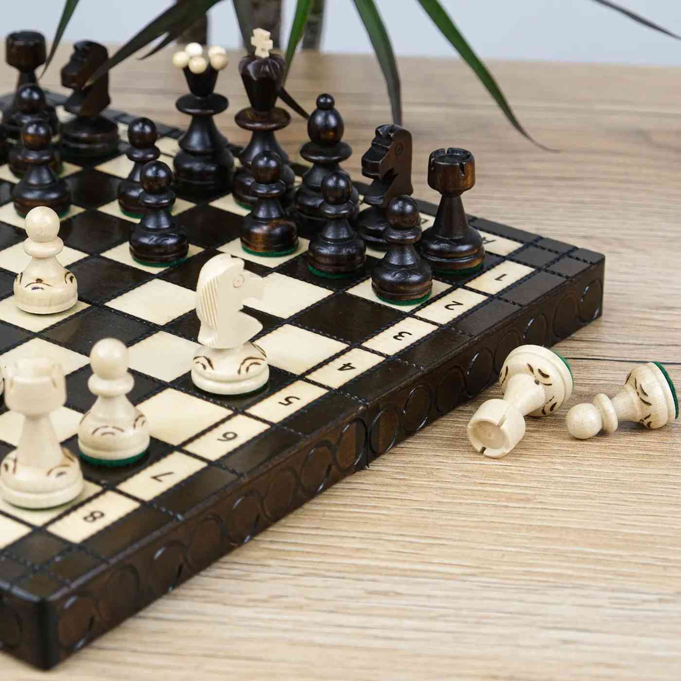 Дошка та фігури виготовлені з натурального дерева. Усередині передбачено зручне місце для зберігання, де фігури акуратно впорядковані та захищені.
