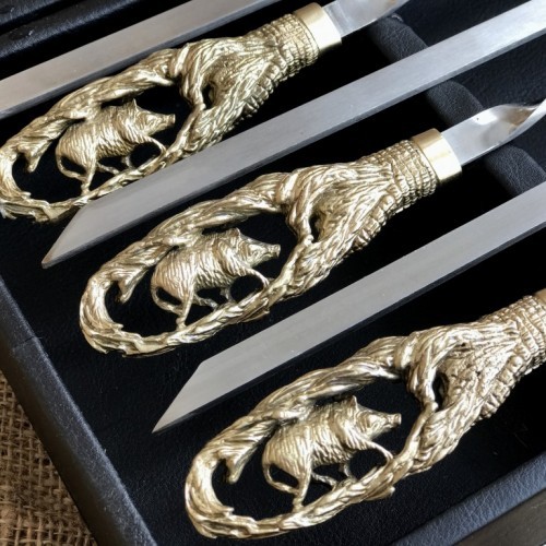 - Шампура с рукоятью из бронзы,выполненные методом вакуумного литья покрытые теплостойким лаком, шампур изготовлен из пищевой нержавеющей стали, толщина металла шампура 10х3мм. Общая длинна шампура с ручкой 60см, Длинна шампура 50см -6шт