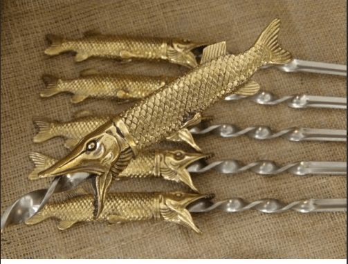 Шампура: 6 штук, твердая пищевая нержавеющая сталь толщиной 3мм. Г-образные