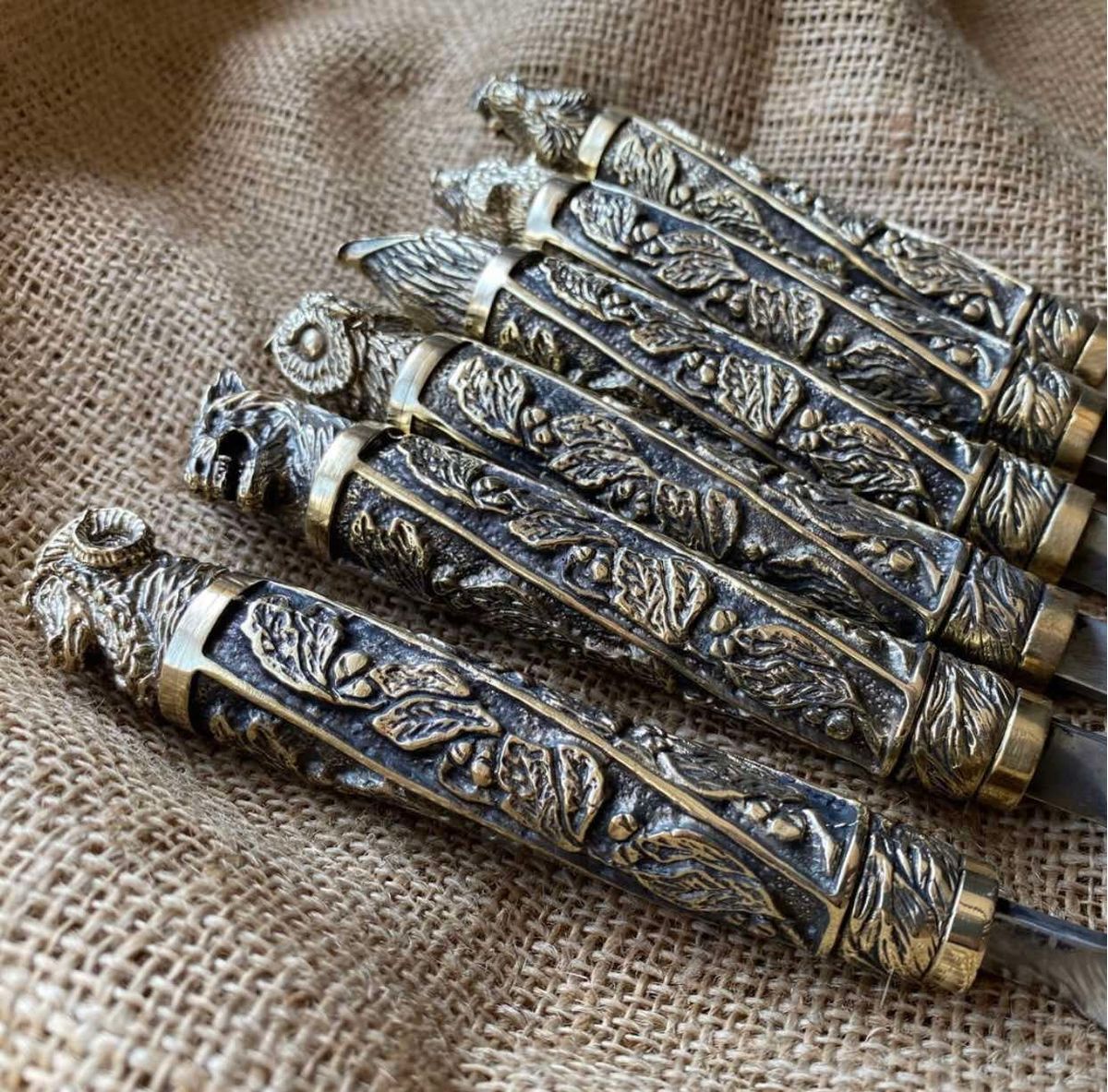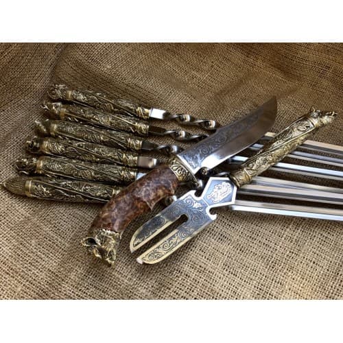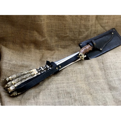 Шампура подарочные ручной работы с вилкой и ножом Звери в калчане