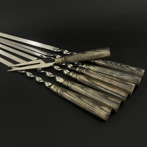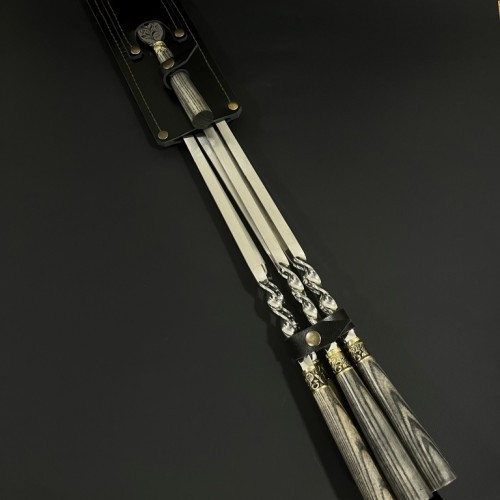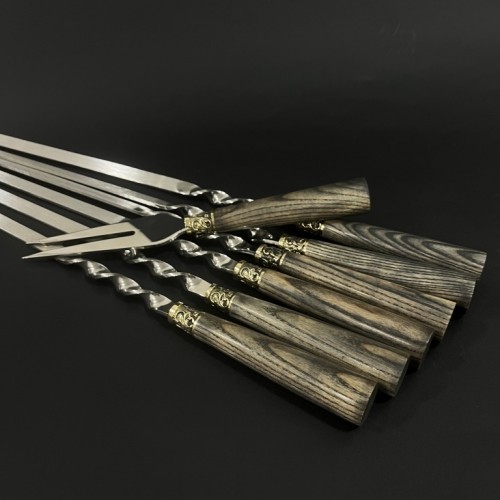 Шампура ручная работа с вилкой в ​​колчанке Ясень