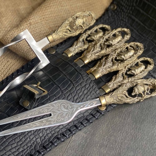 Шампура ручної роботи + вилка + подвійний шампур Кабан у закритому сагайдаку