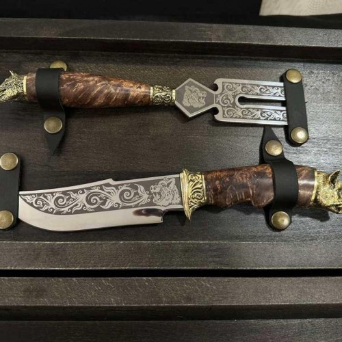 2. Нож охотничий с лезвием из нержавеющей стали 40х13, общая длина 258 мм, рукоятка из клена,