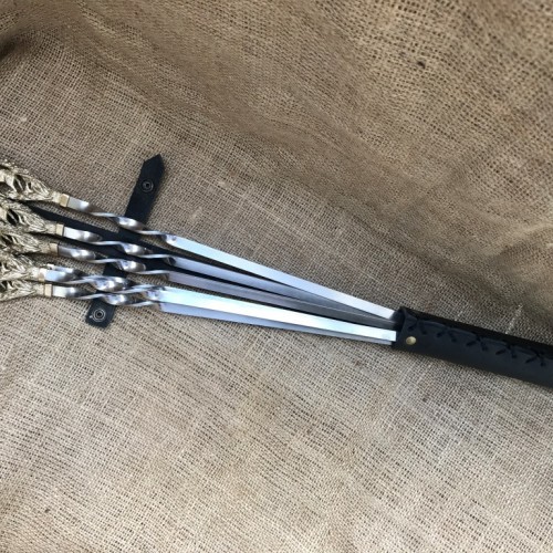 Шампур виготовлений із харчової нержавіючої сталі 12Х18Н10Т, товщина металу шампура 10х3мм. Загальна довжина шампура з ручкою 58см, Довжина шампура 50см.