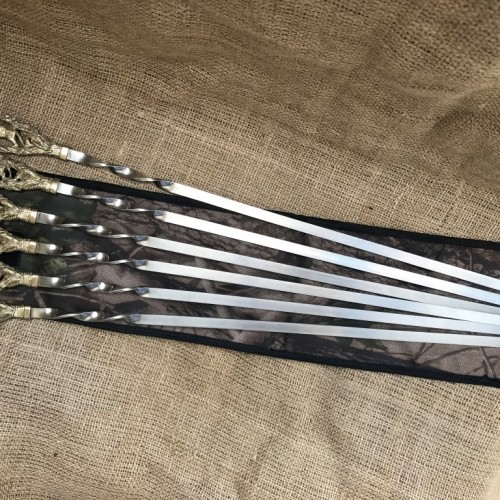 Шампур виготовлений із харчової нержавіючої сталі 12Х18Н10Т, товщина металу шампура 10х3мм. Загальна довжина шампура з ручкою 58см, Довжина шампура 50см.