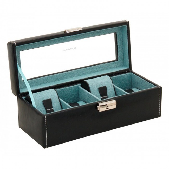 Эксклюзивный футляр для 4-х часов коричневого цвета. Отделка из натуральной кожи теленка. Запирается на замок.
