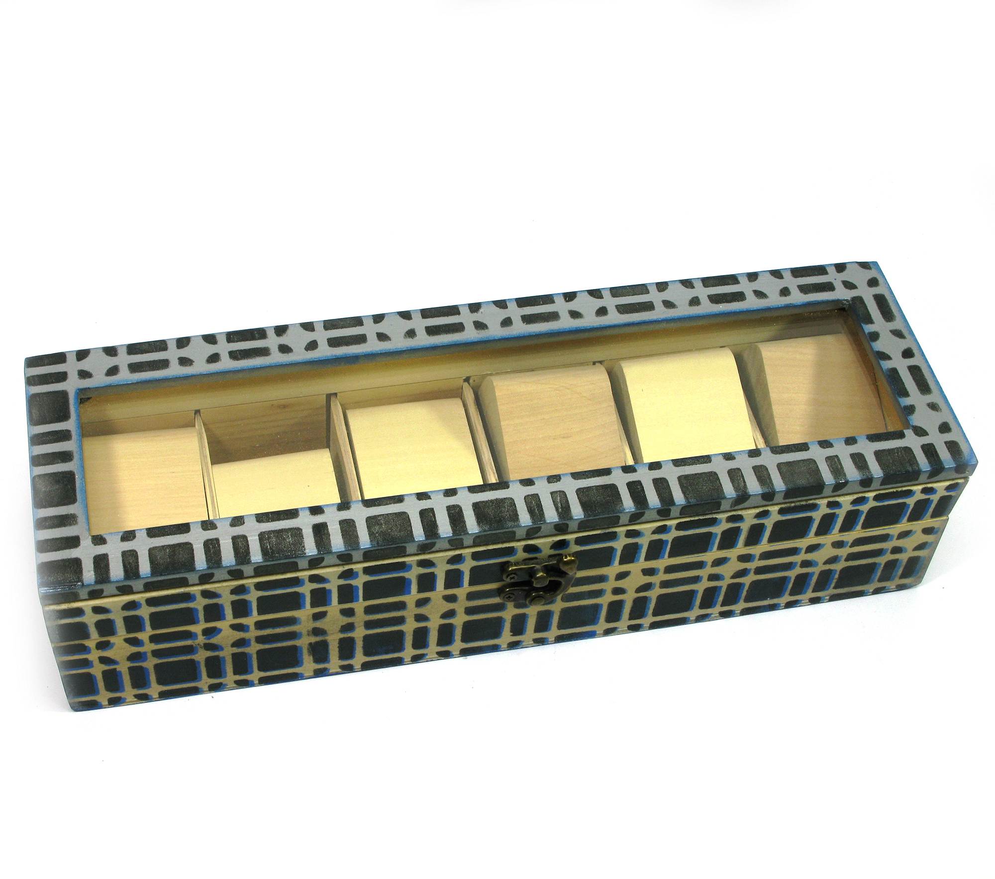 Шкатулка для часов на 6 шт "Клетка" дерево 34,5х11х8,5 см