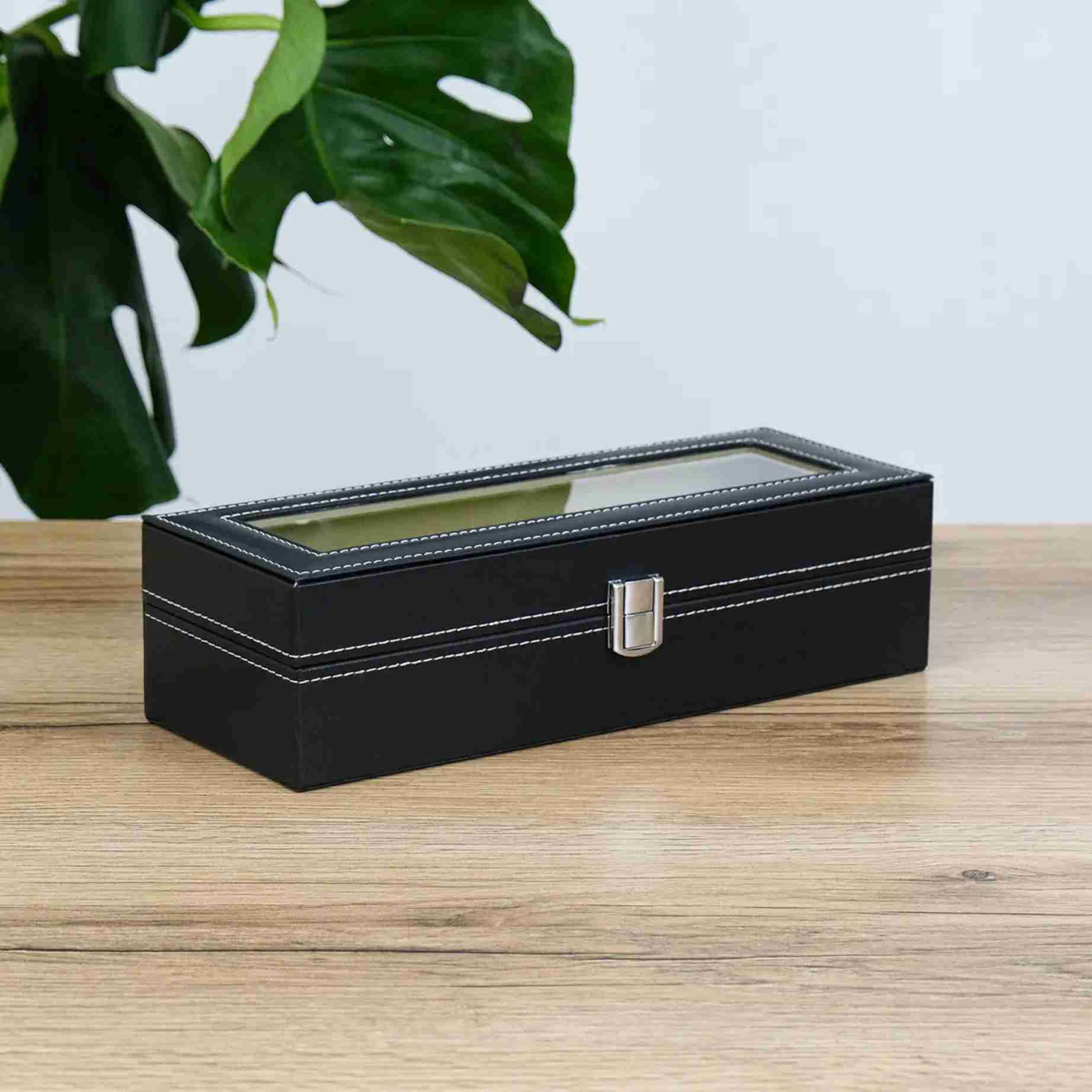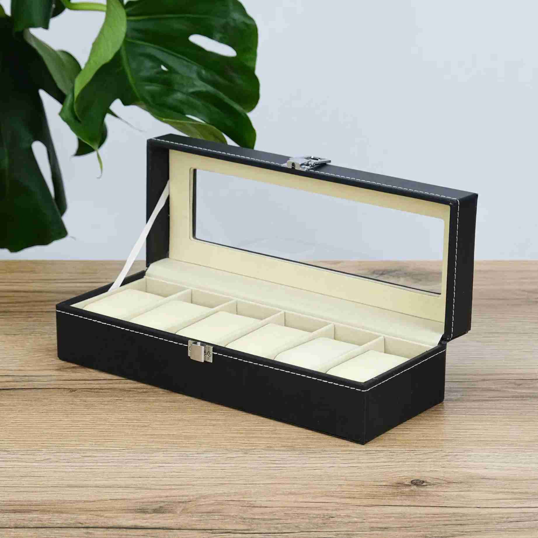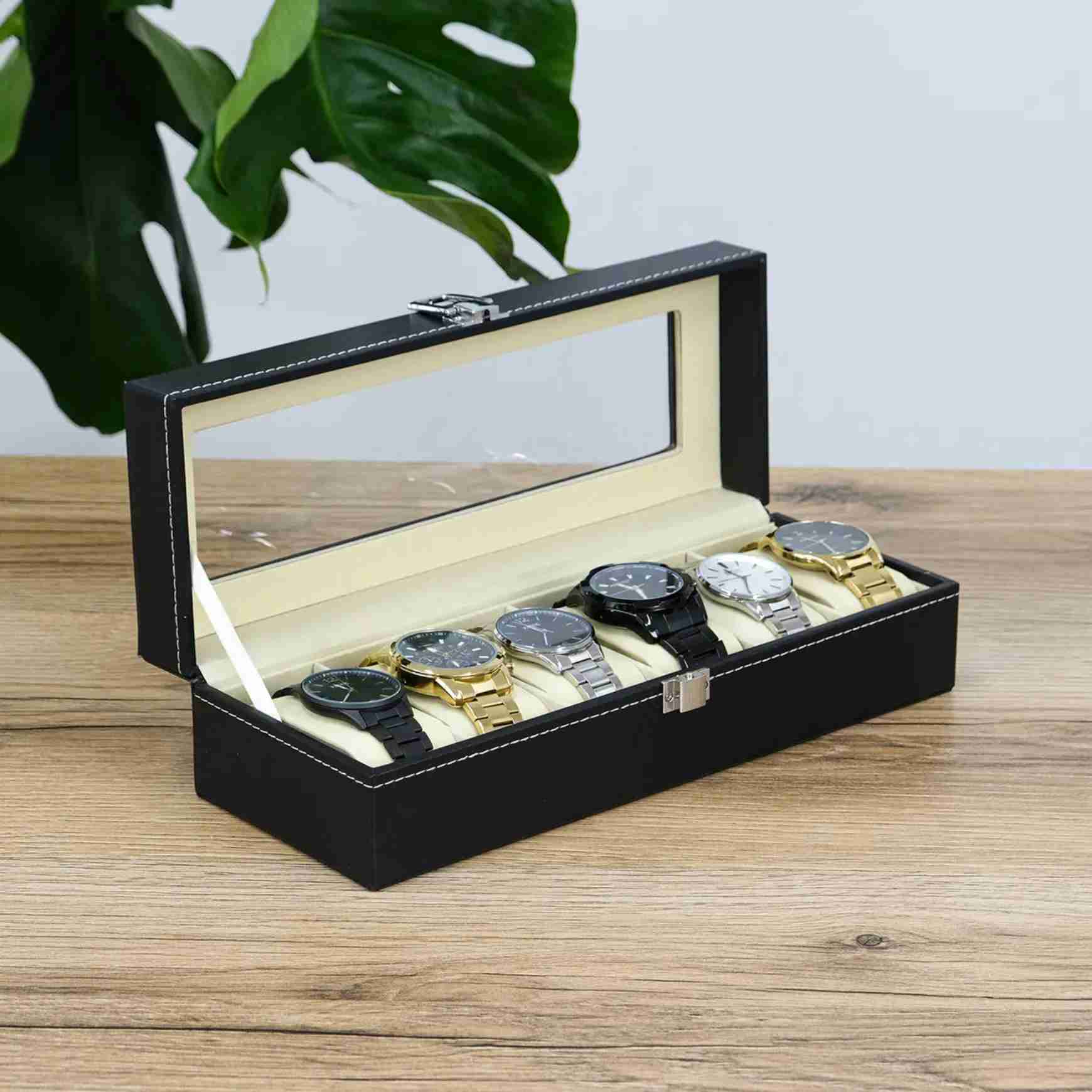 Шкатулка для годинників чорна екошкіра 6 відділень Noble Storage