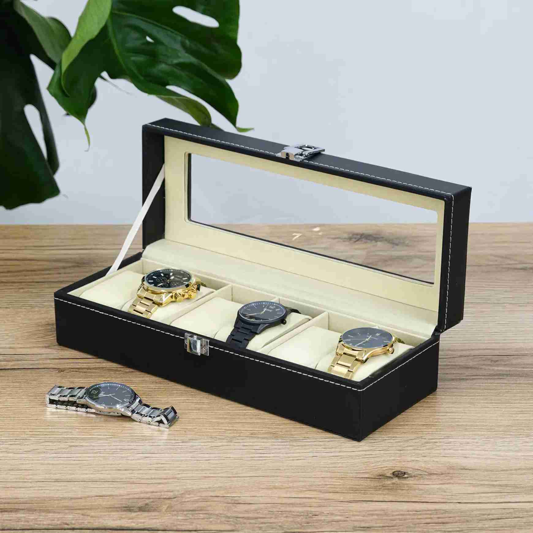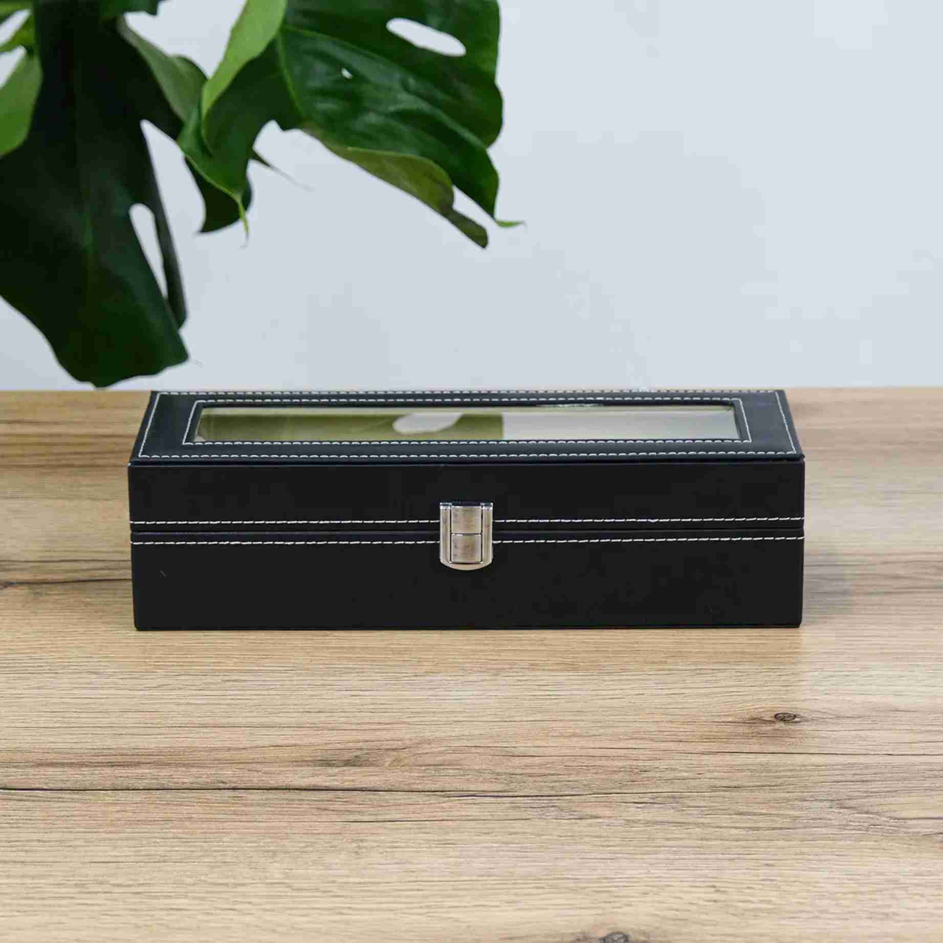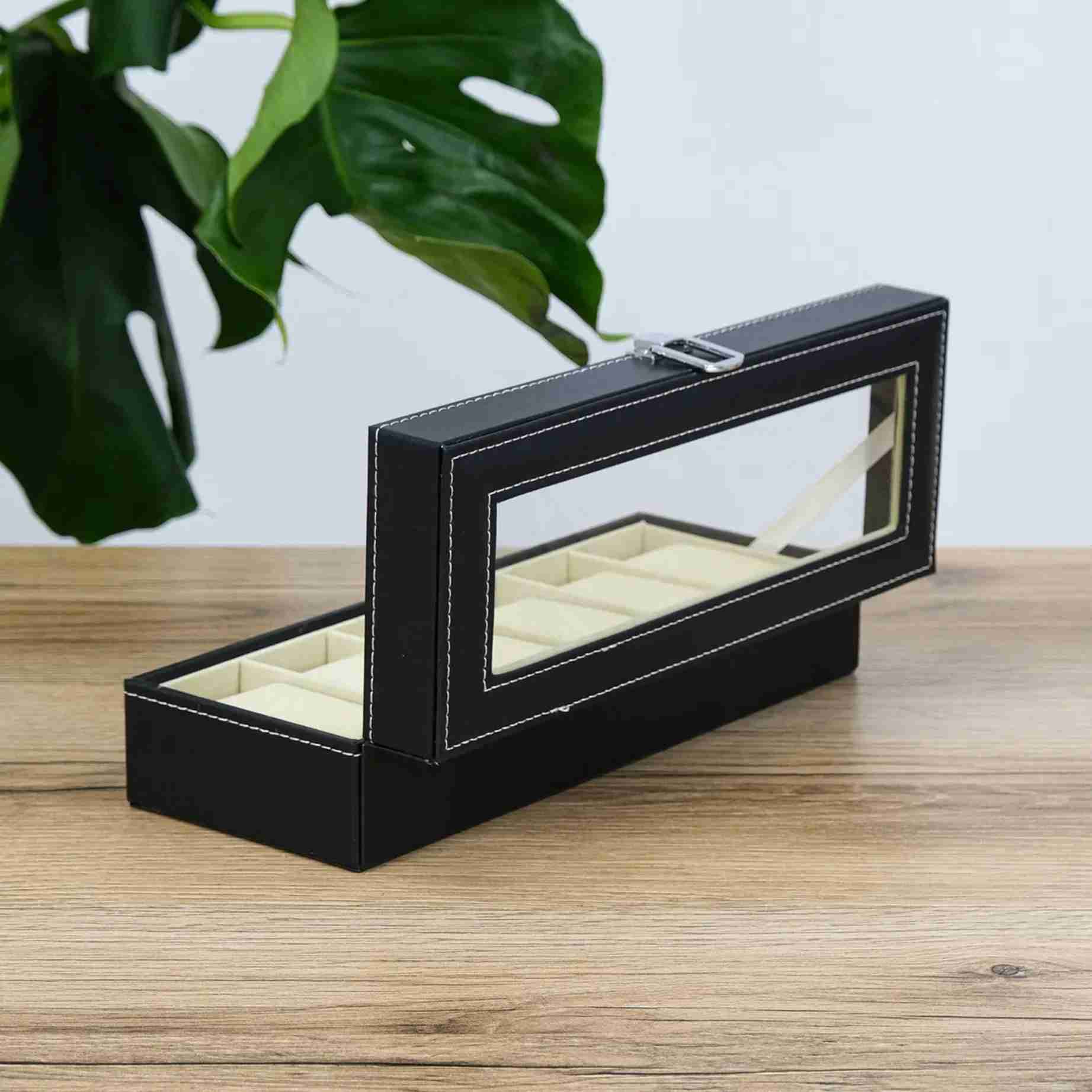Шкатулка для годинників чорна екошкіра 6 відділень Noble Storage
