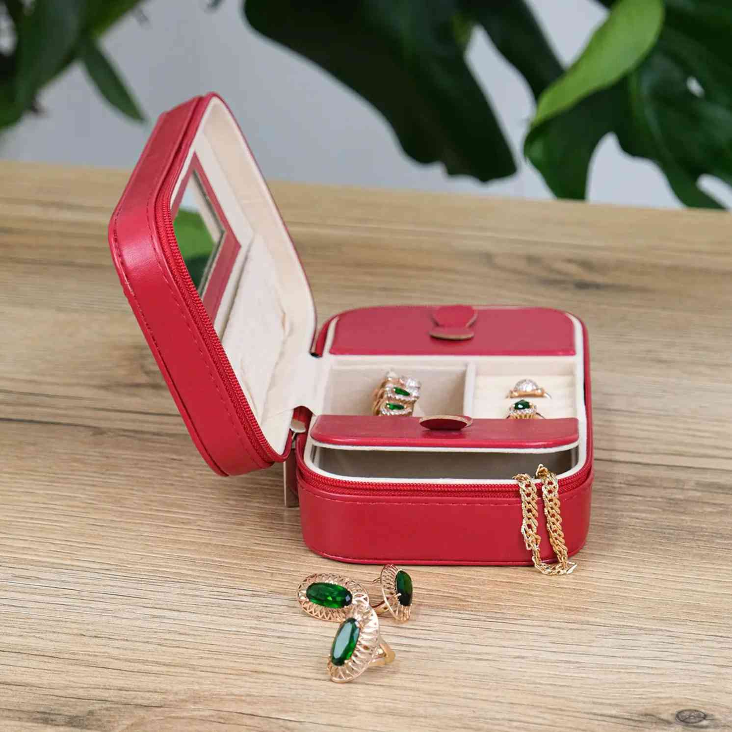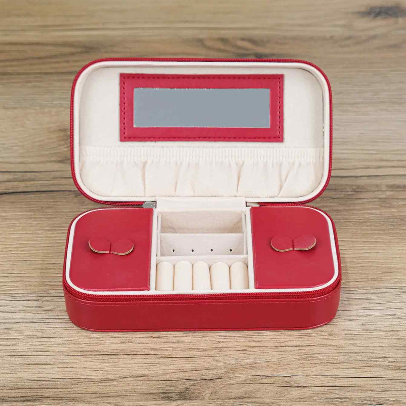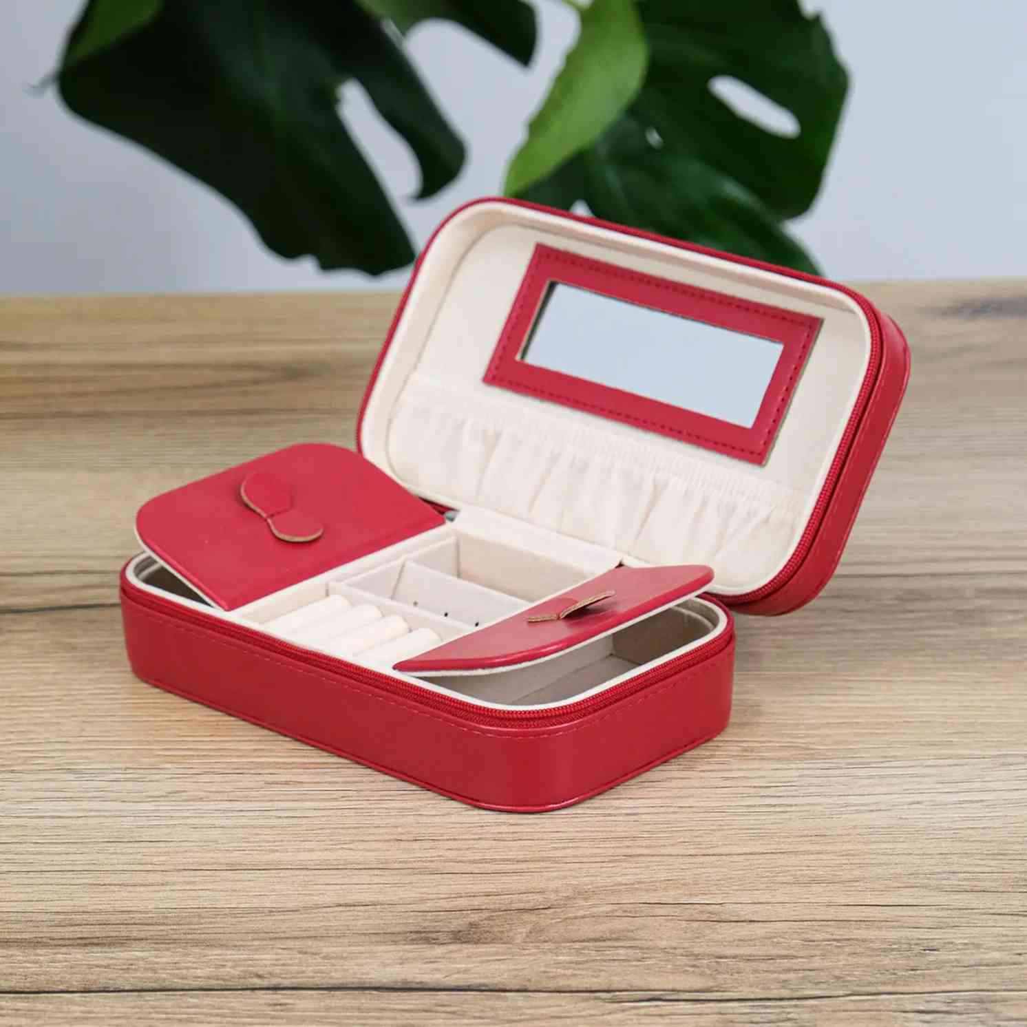 Шкатулка для прикрас із дзеркалом червоного кольору з екошкіри Vellin