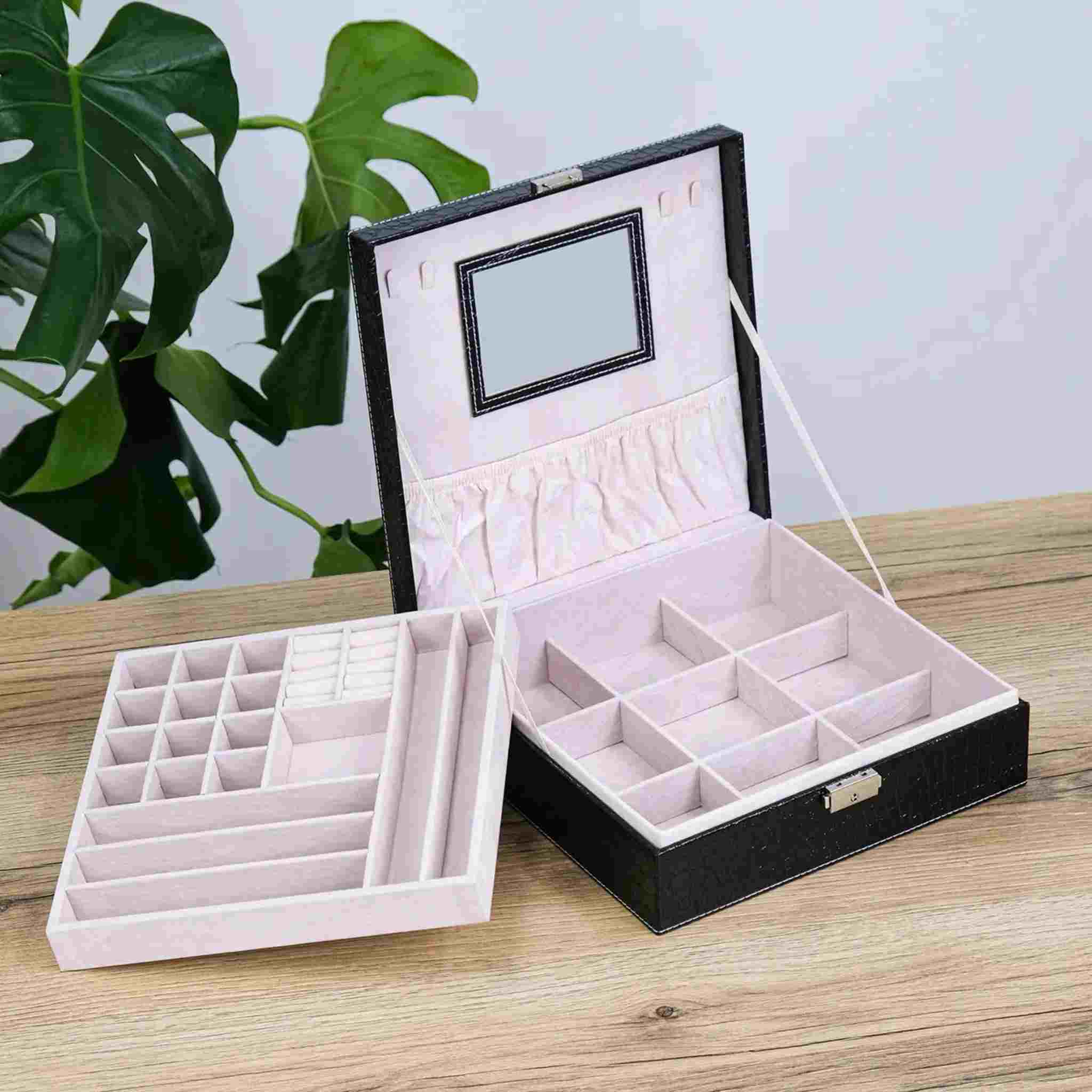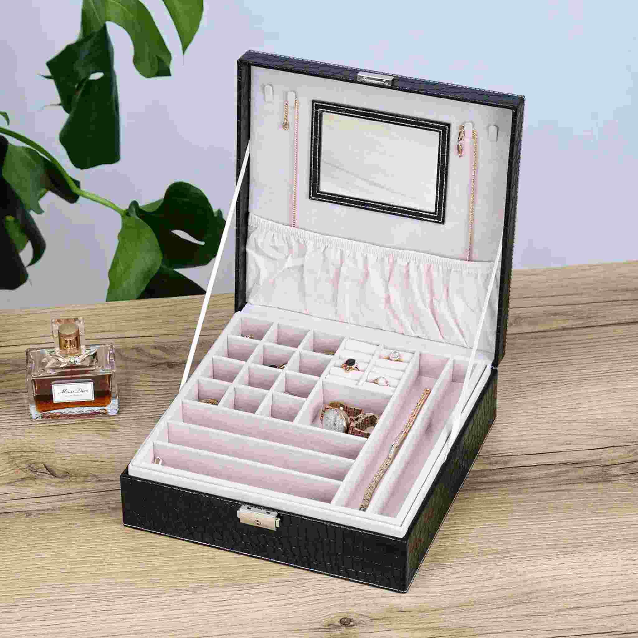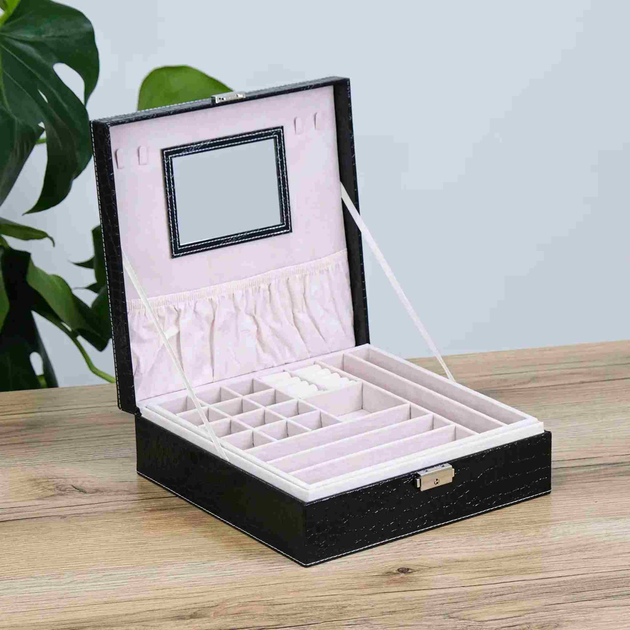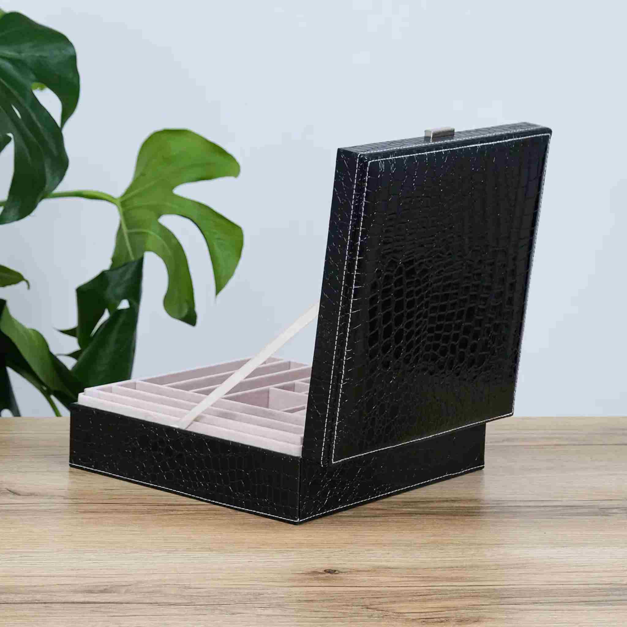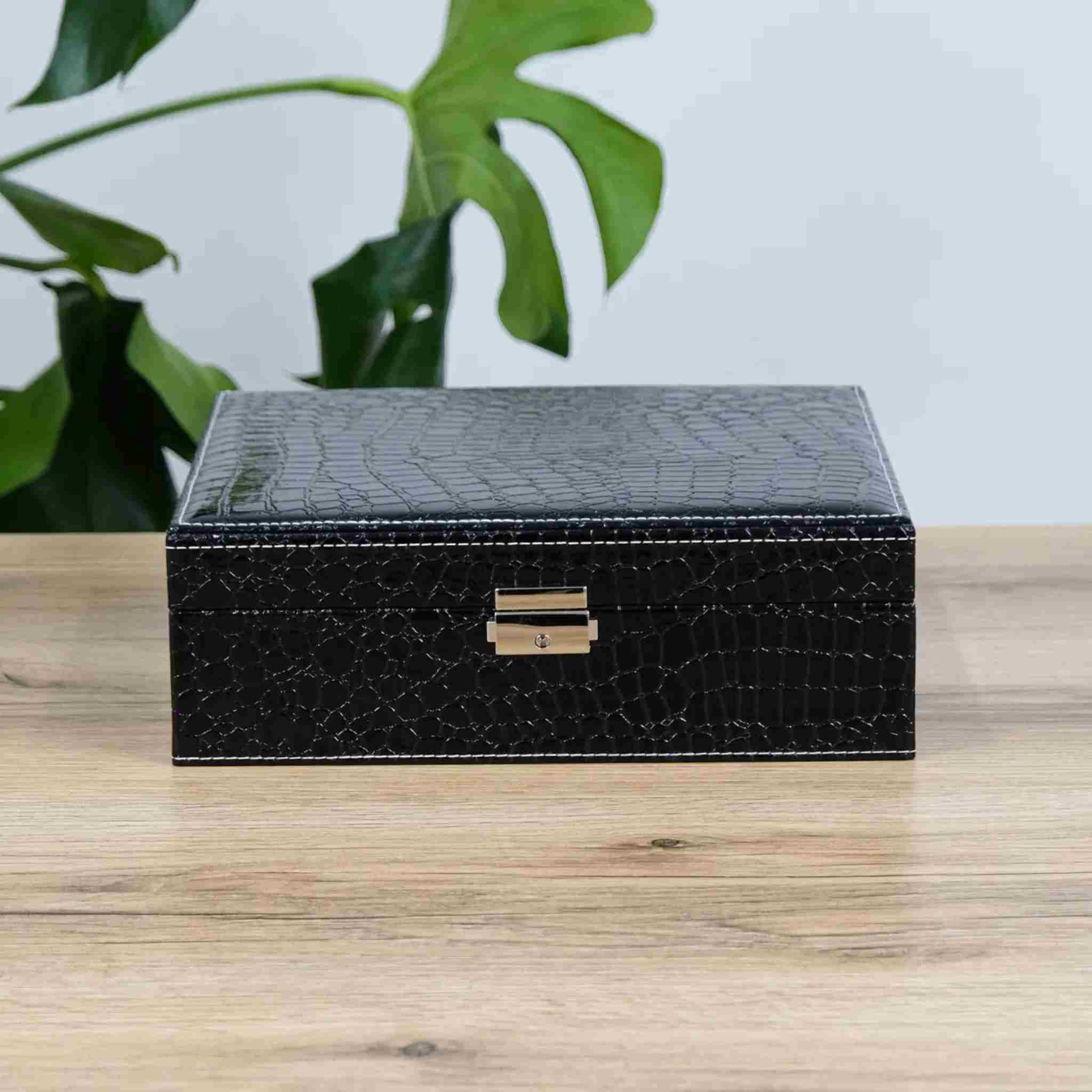 Шкатулка для прикрас з дзеркалом чорна під крокодила Croco Prestige