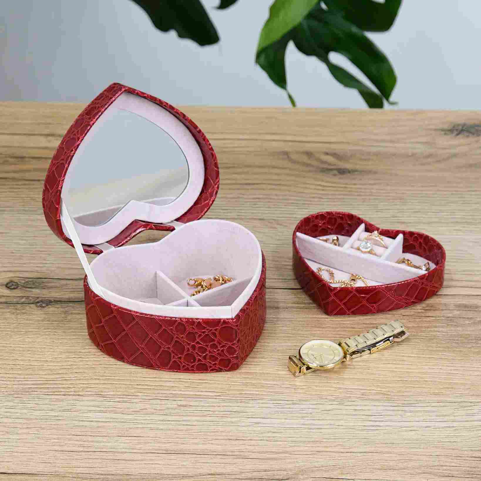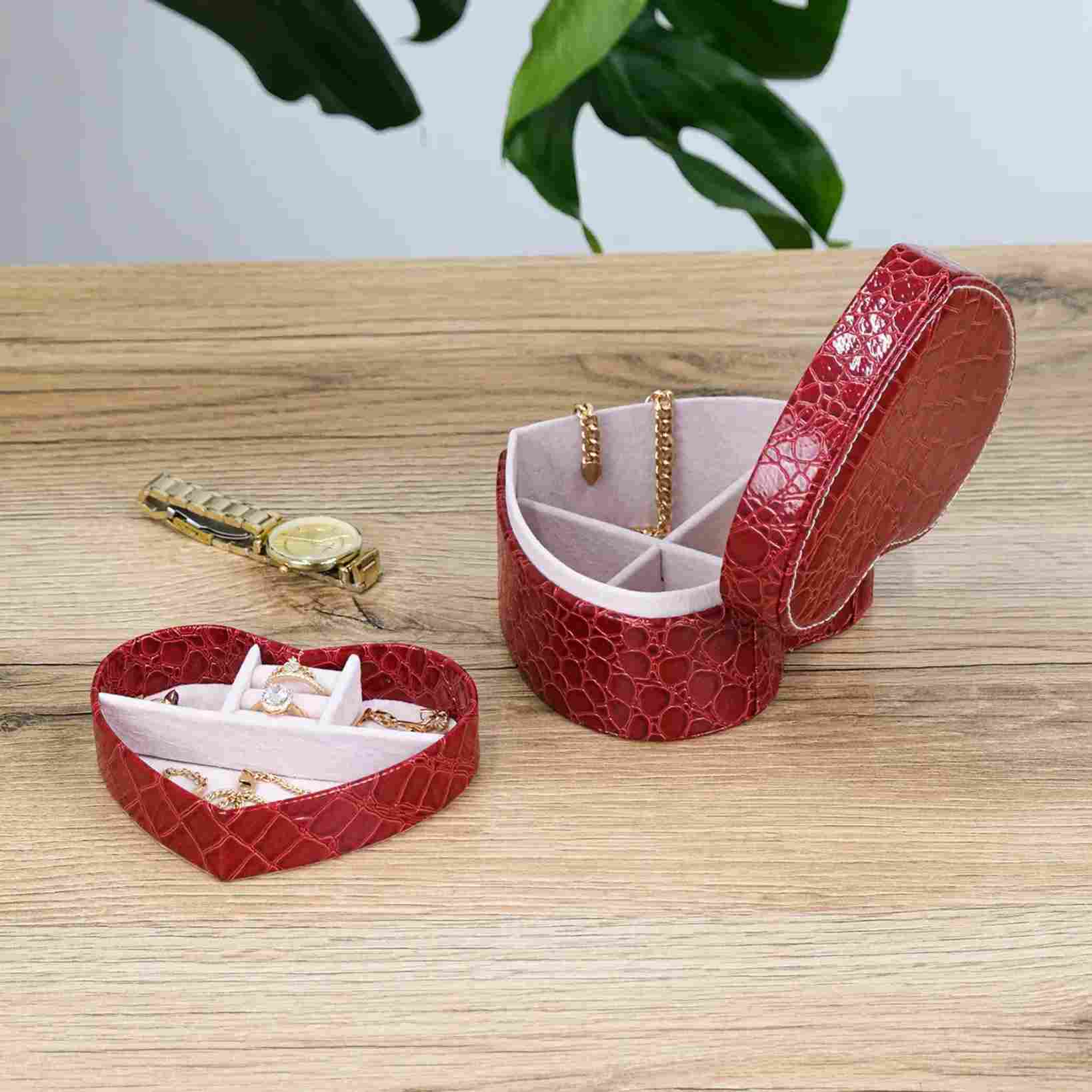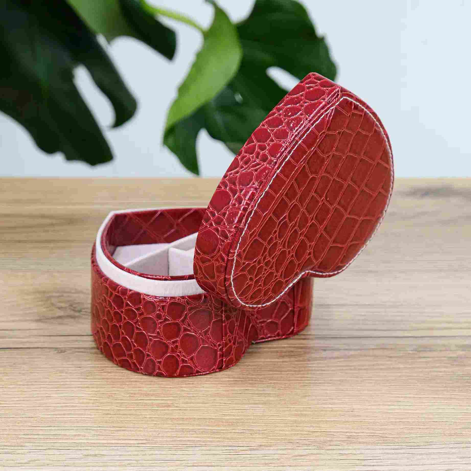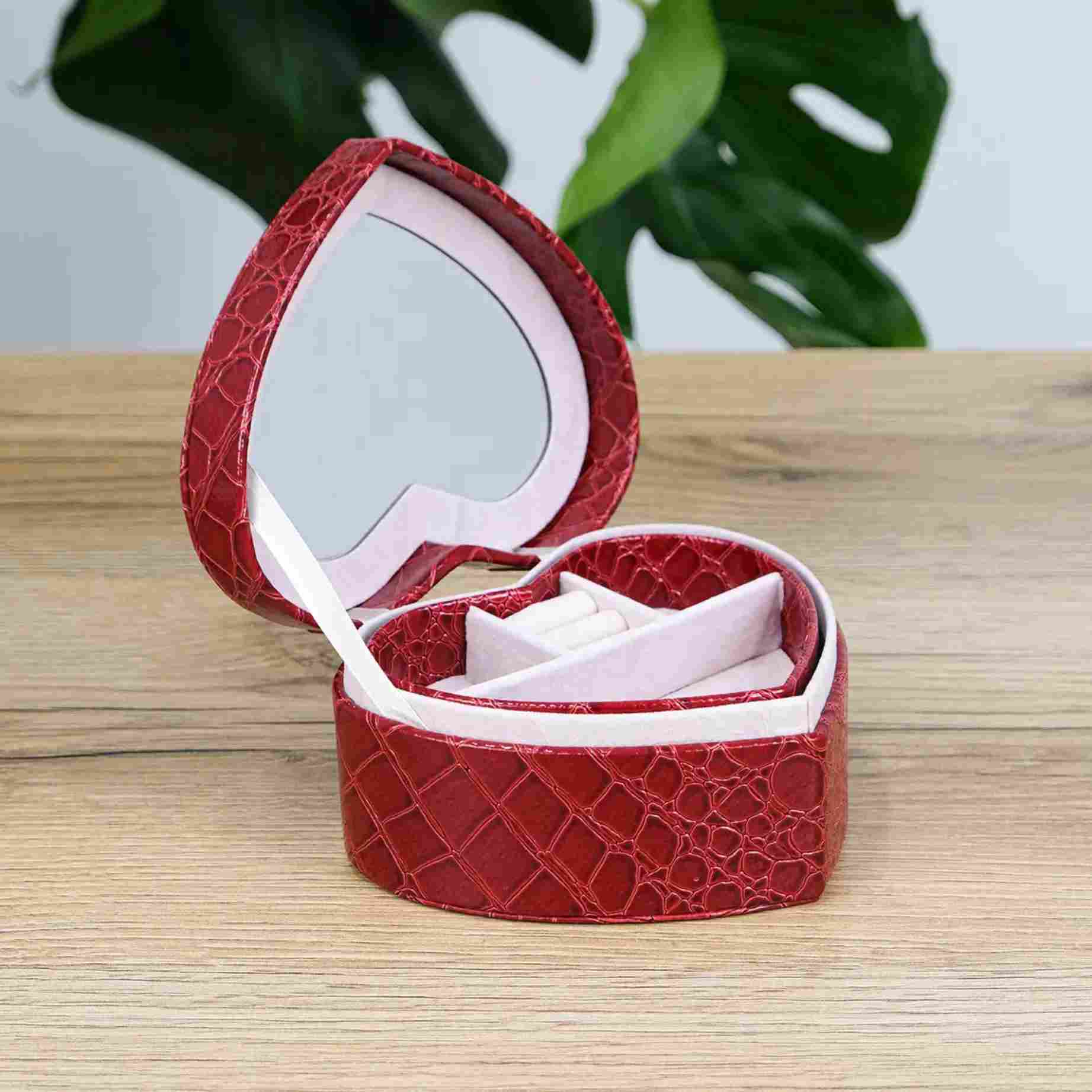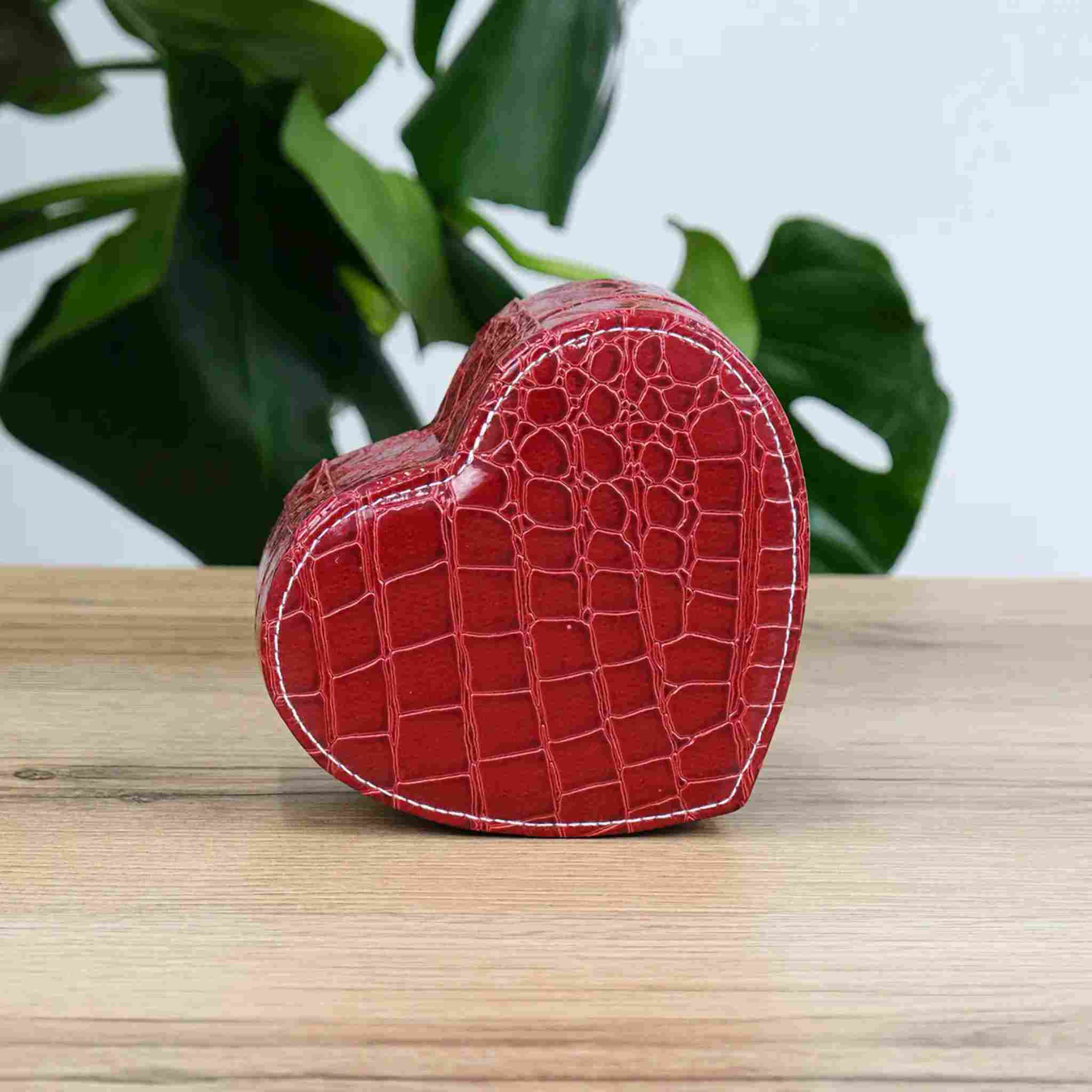 Эта изящная шкатулка в форме сердца — маленькое воплощение заботы и красоты, которое хочется держать рядом каждый день. Глубокий красный цвет с фактурой под кожу добавляет ощущение благородства, а компактный размер делает её идеальным решением для хранения любимых украшений дома или в поездке. Это не просто органайзер — это настроение, которое открывается вместе с крышкой.