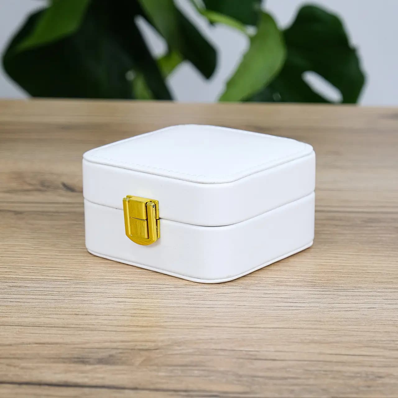 Шкатулка для украшений маленькая квадратная экокожа белая