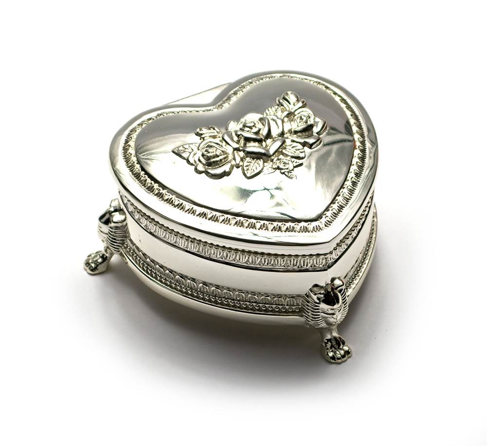 Шкатулка для украшений "Сердечко" 8х7,5х3,5 см серебро