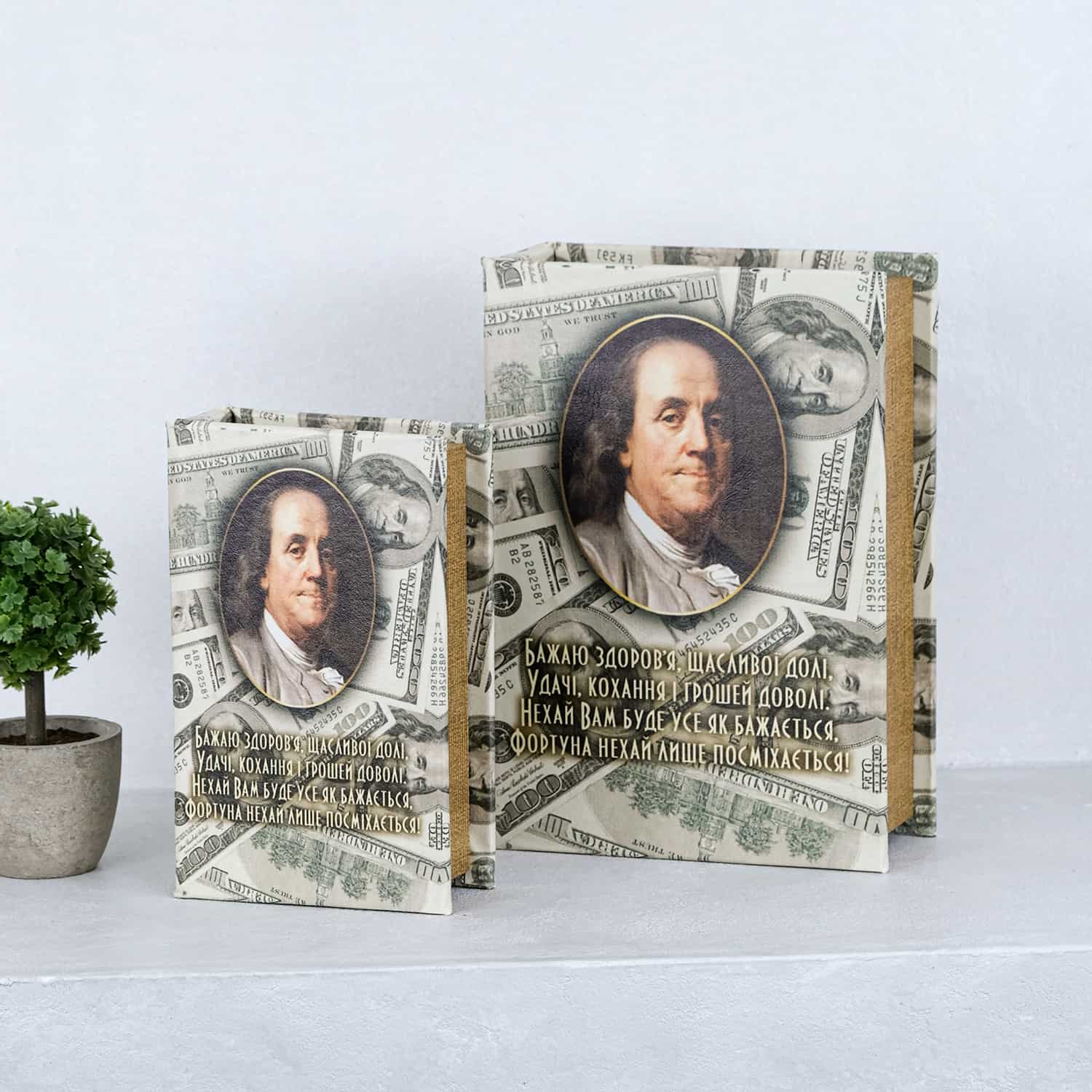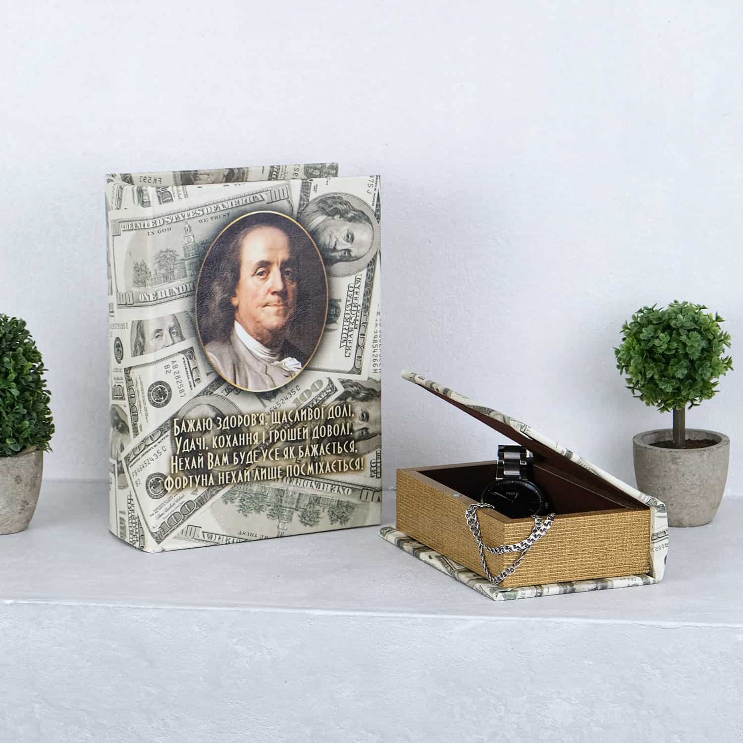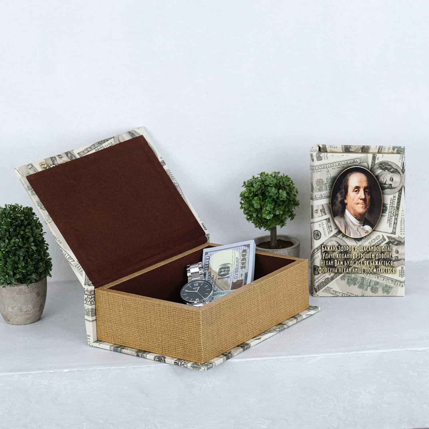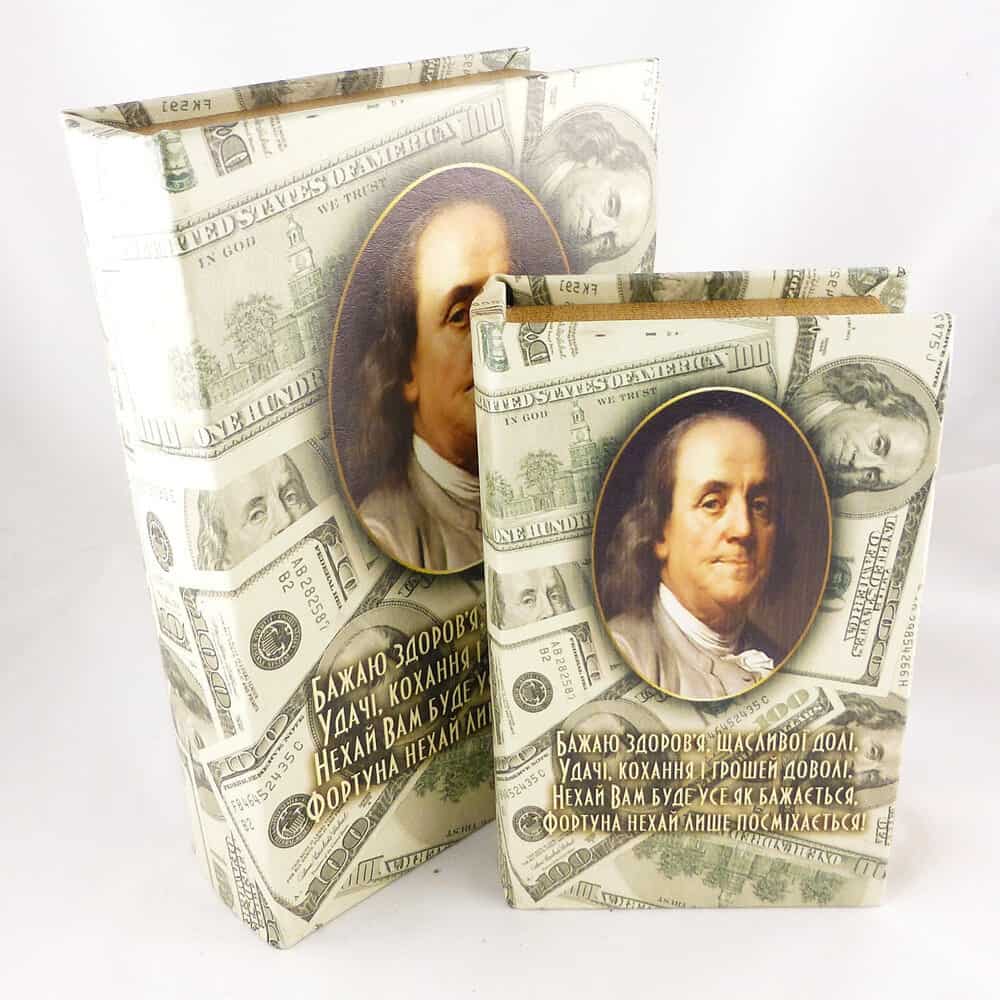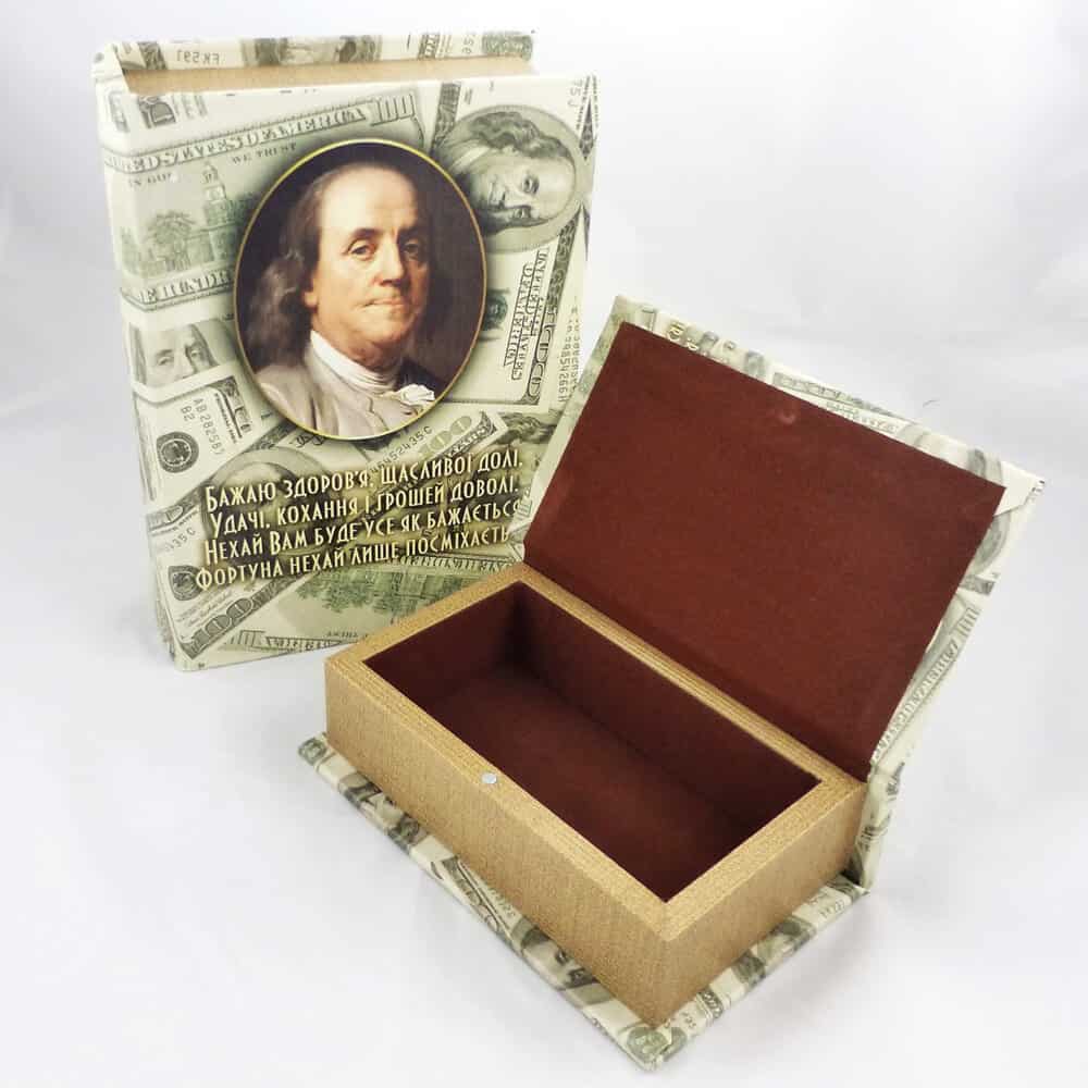 Шкатулка-книга из экокожи "Доллары" 22*16*7 см