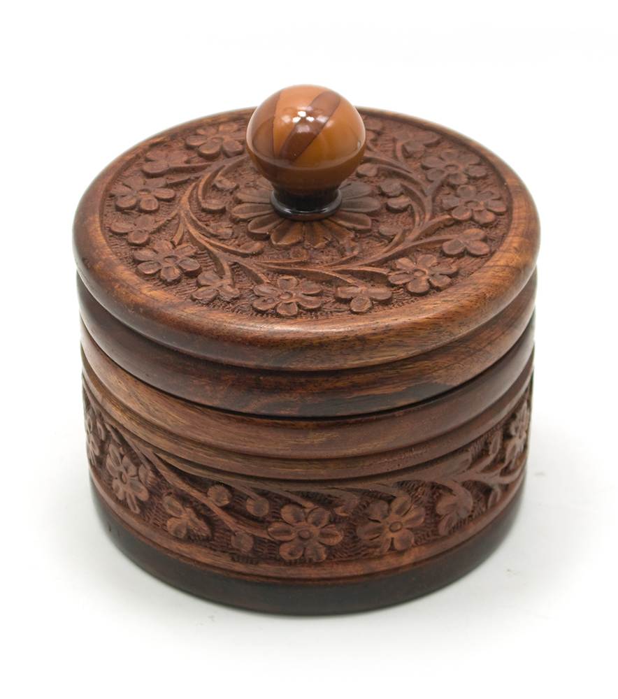 Шкатулка круглая, розовое дерево d-10 см, h-8,5 см