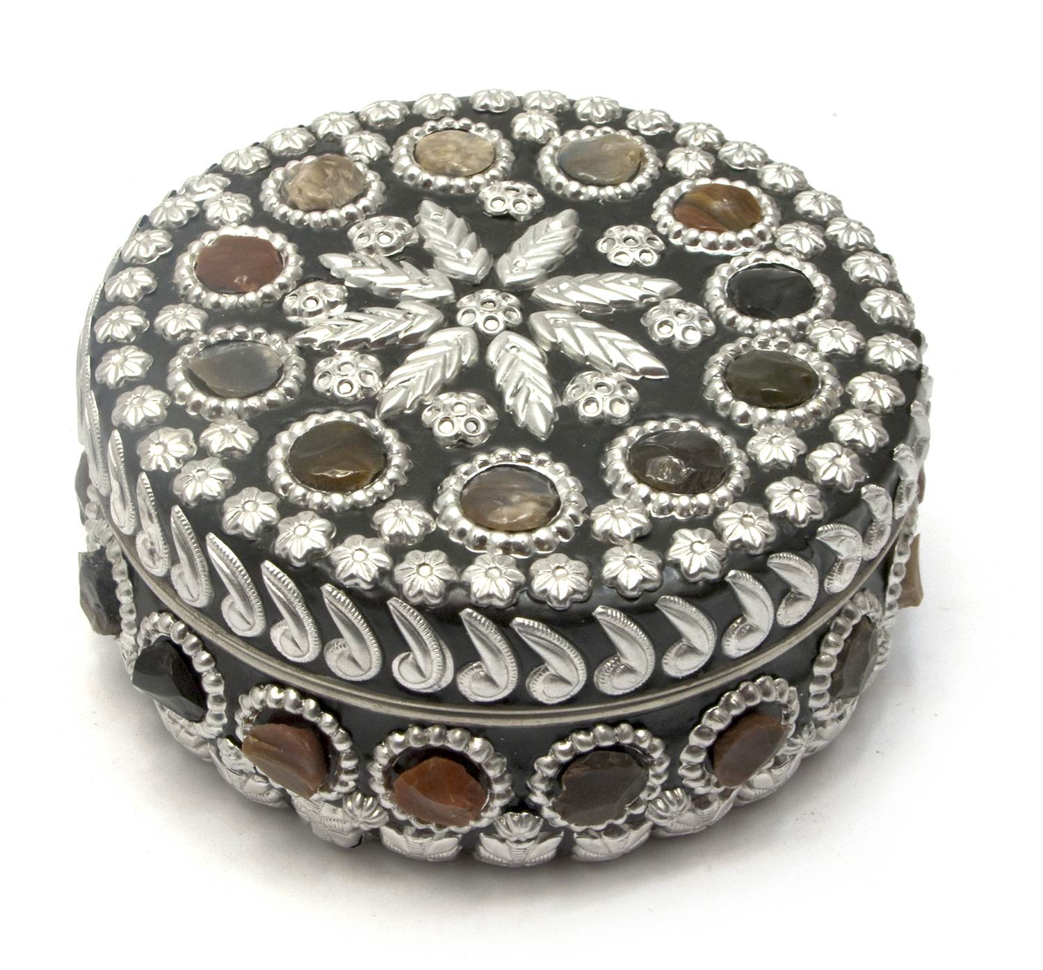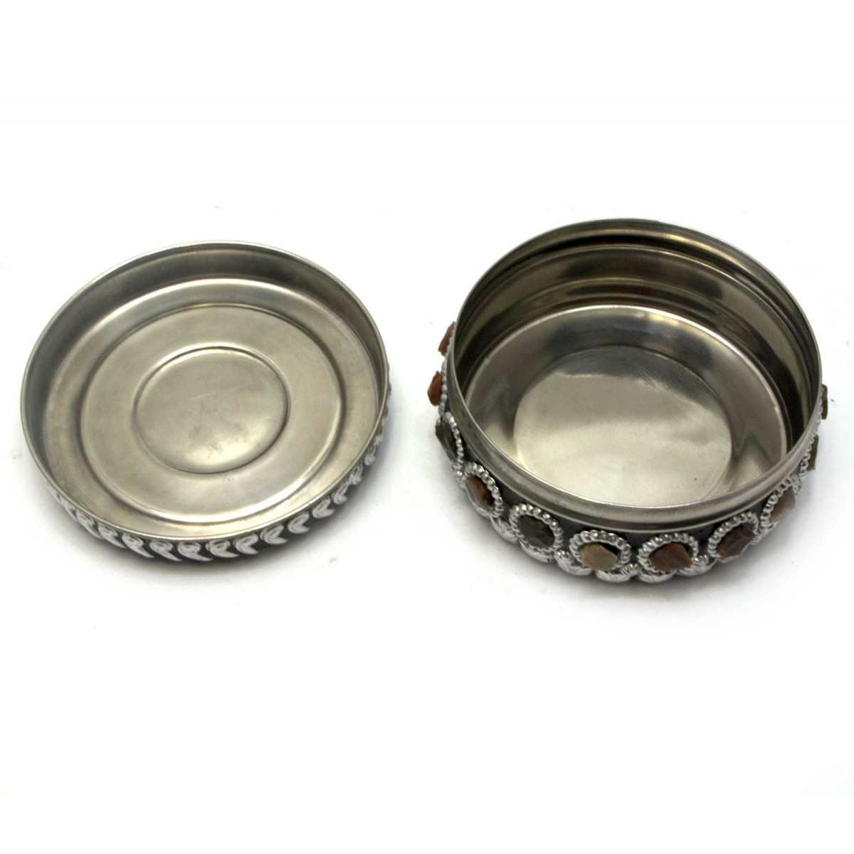 Скринька металева з камінням d-11.5 см, h-5 см