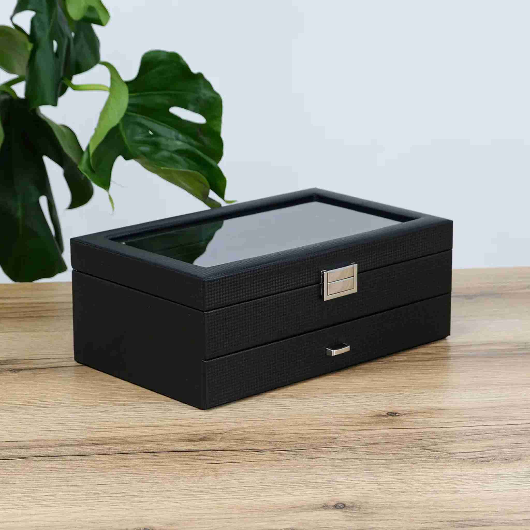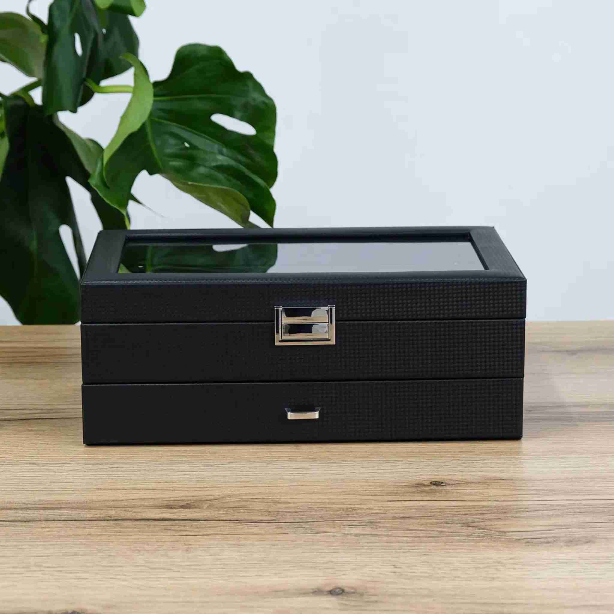Шкатулка-органайзер 2-ярусна для годинників чорна екошкіра