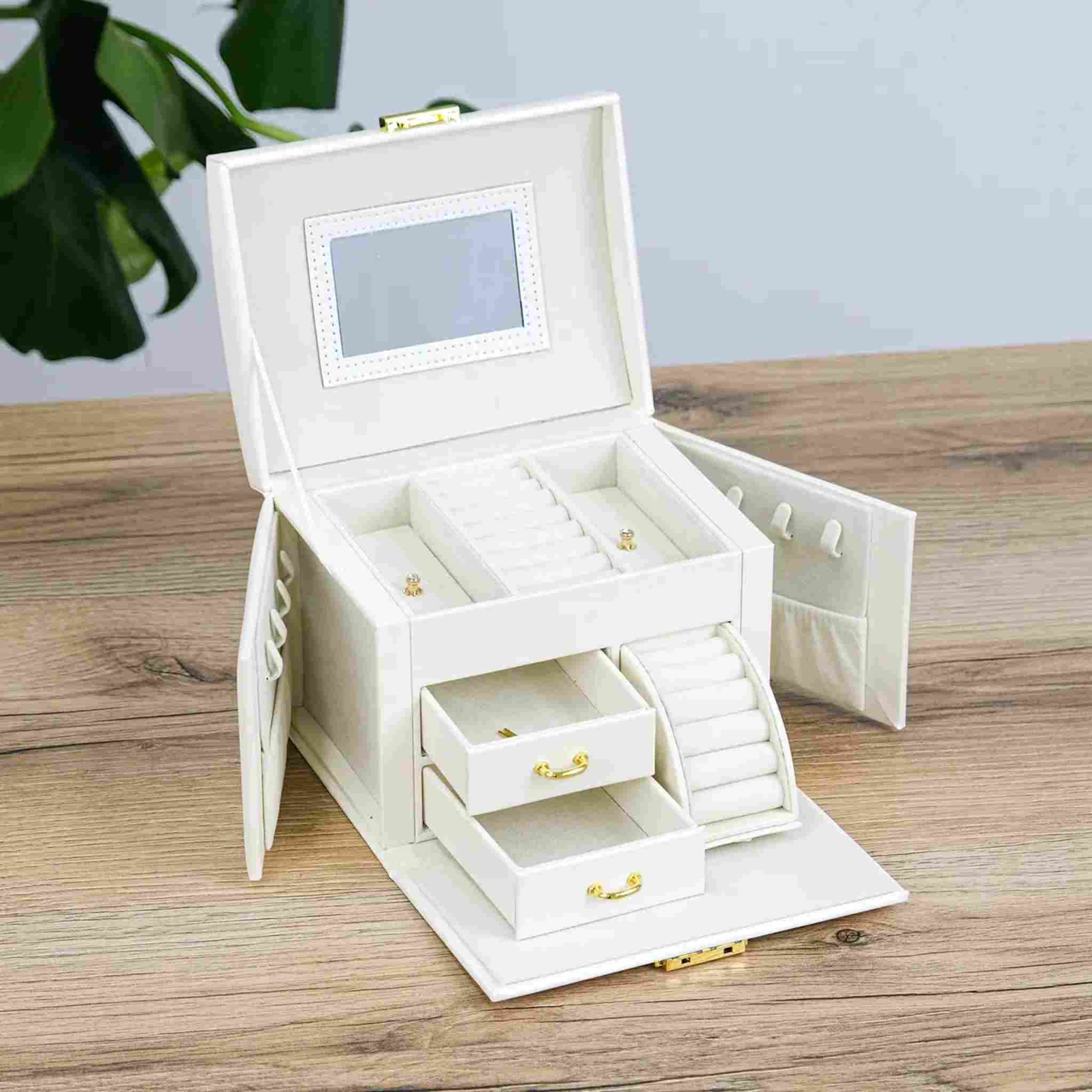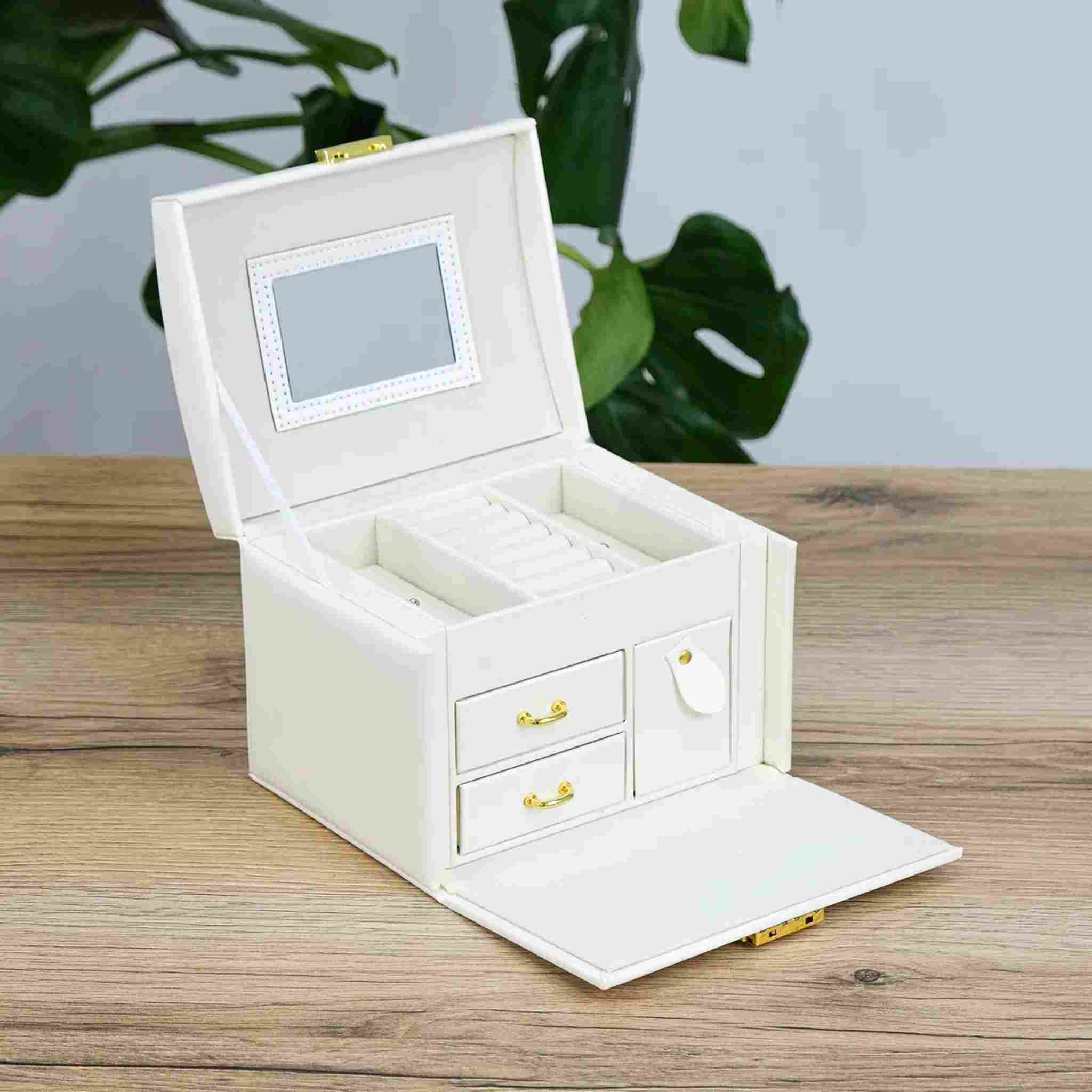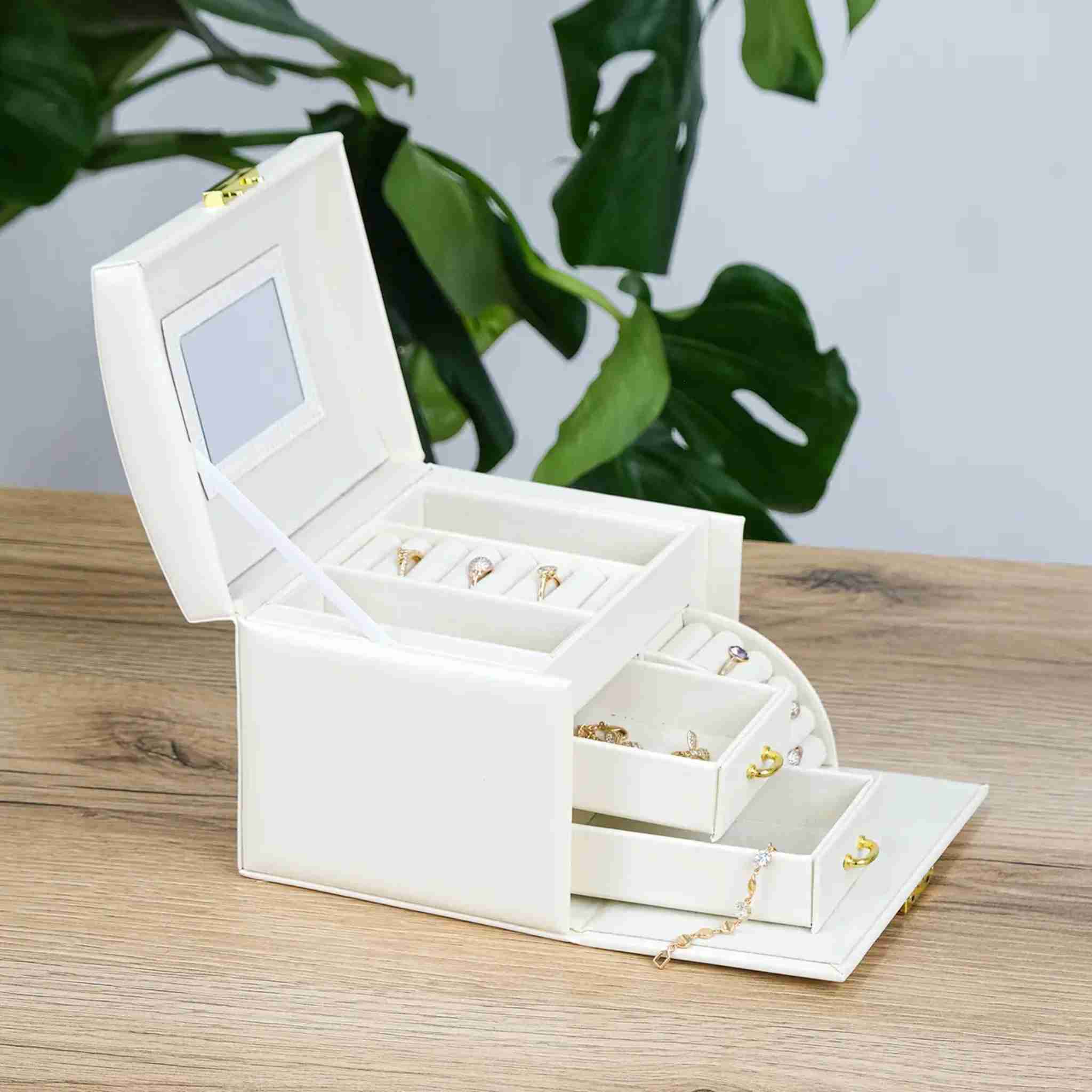 Шкатулка-органайзер для прикрас із бічними відділеннями біла Mirror Case