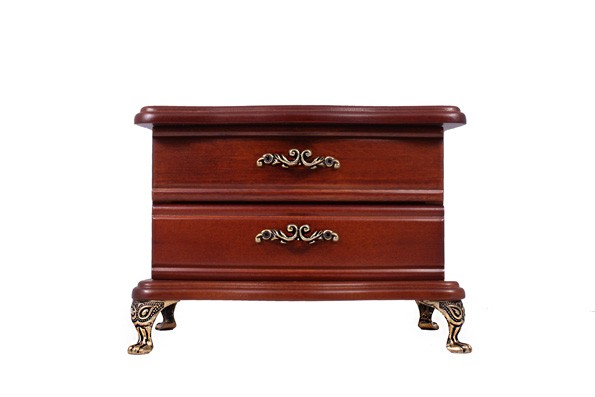 Секрет цієї популярності напевно криється в дещо антикварному вигляді, який надають їй химерних ніжок у вигляді лап, ручки-завитки «під бронзу». Звичайно ж, не варто забувати про її практичність: два яруси призначені під різні ювелірні вироби - це гарантія того, що всі Ваші прикраси будуть зберігатися в одному місці і завжди під рукою.