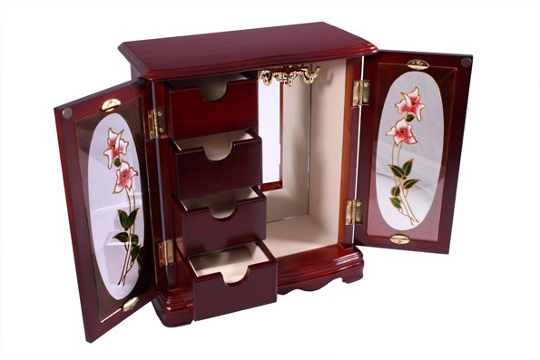 Этот мини шкафчик - желанный подарок для женщины, которая любит подчеркивать свою элегантность украшениями, и у которой к каждому наряду найдется подходящая брошь или бусы.