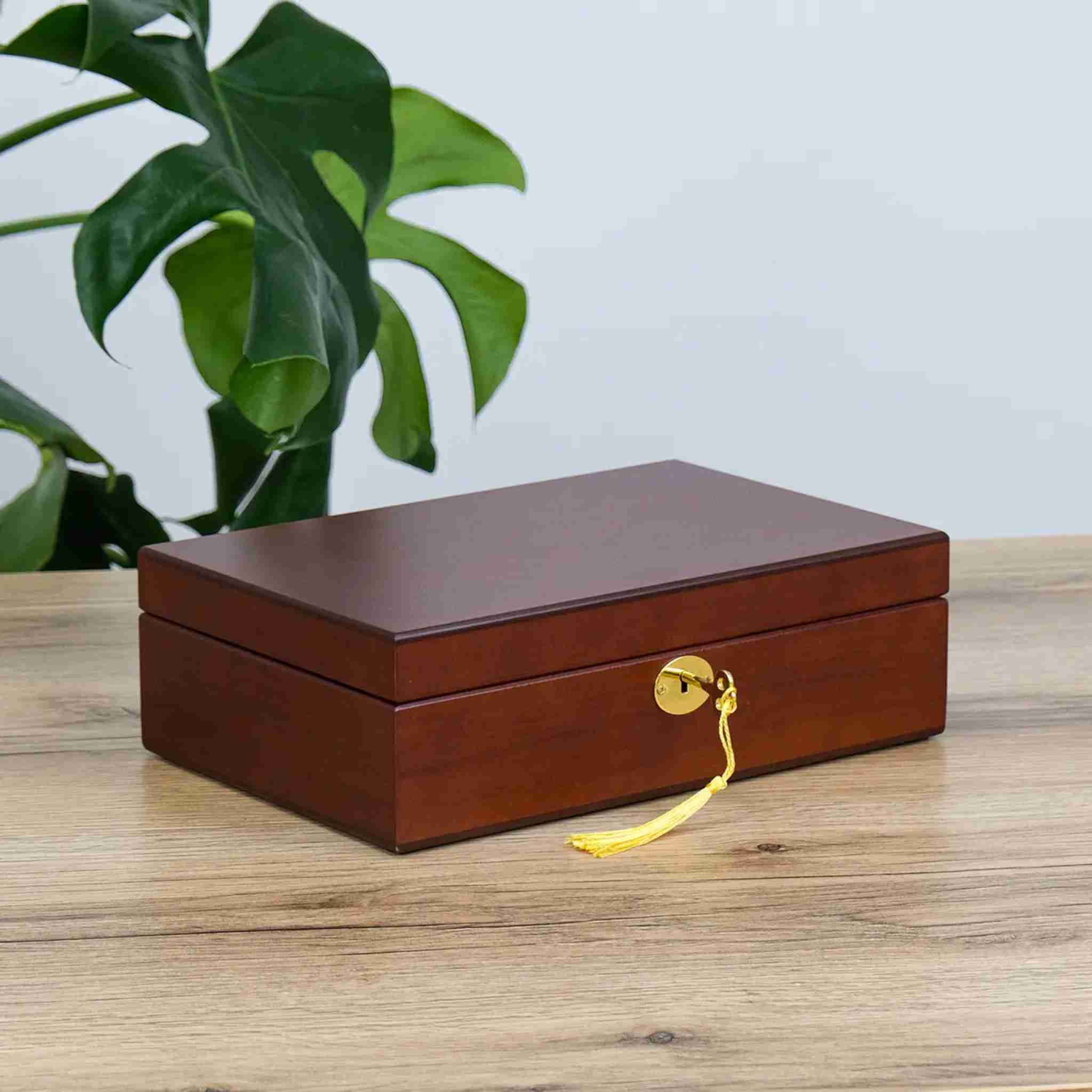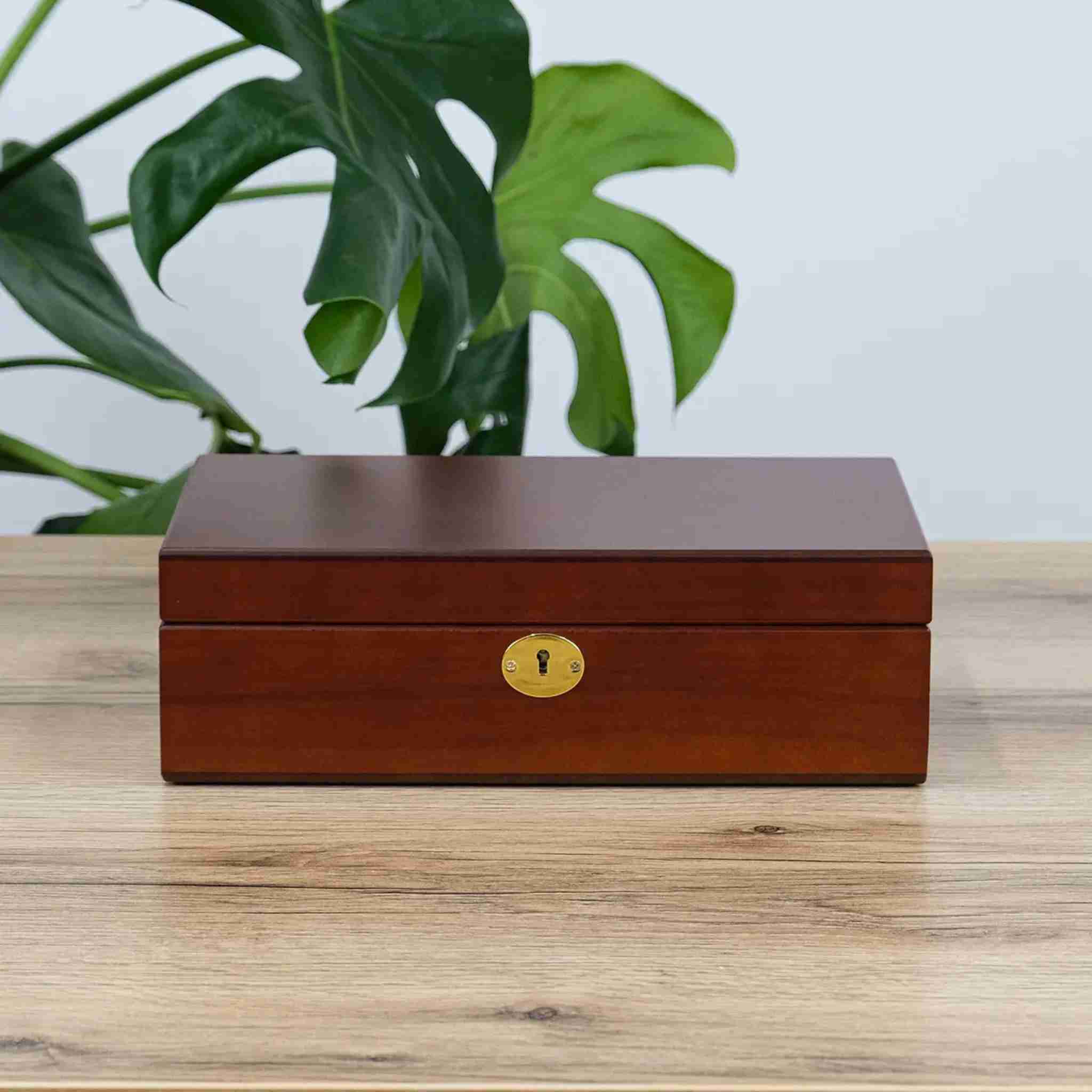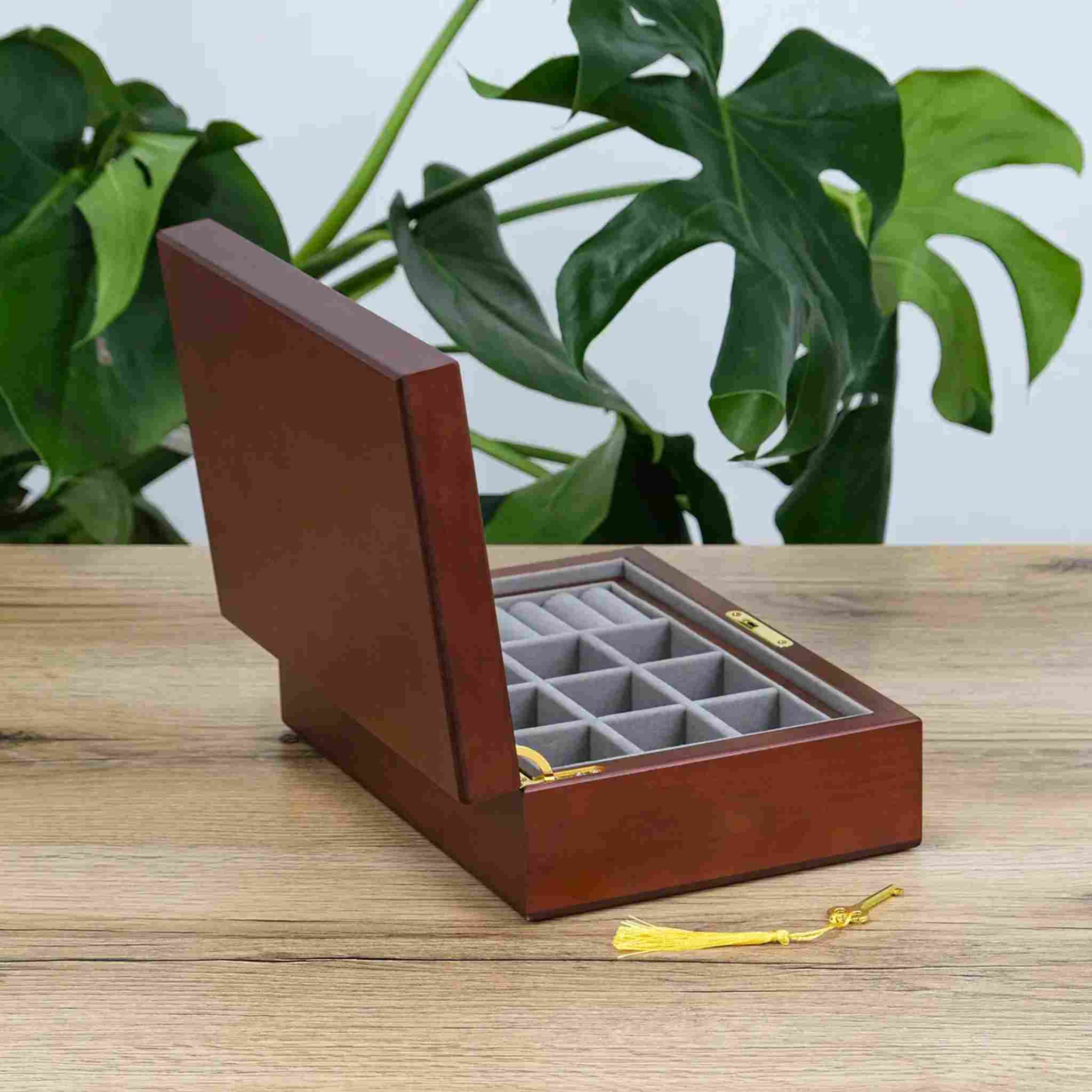 Ця компактна дерев’яна скринька для прикрас — вдалий вибір для тих, хто прагне порядку та дбайливого зберігання улюблених аксесуарів. Насичений коричневий відтінок дерева виглядає стримано й елегантно, додаючи відчуття надійності та гармонії в інтер’єрі. Кришка з дзеркалом робить використання максимально зручним — ви можете одразу оцінити свій образ і швидко обрати прикраси.