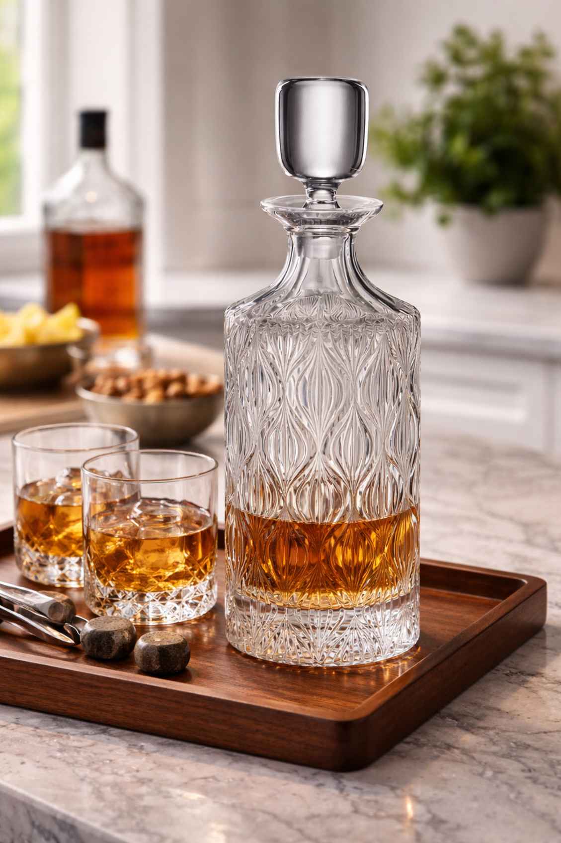 Виготовлений з високоякісного богемського скла, цей штоф демонструє неперевершену прозорість і чистоту матеріалу. Майстерне гранення підкреслює сяйво напою всередині — будь то благородний коньяк, ароматна настоянка чи колекційний лікер. Завдяки об'єму 750 мл та зручній формі, він чудово підходить як для щоденного використання, так і для сервірування урочистих вечерь і святкових застіль.