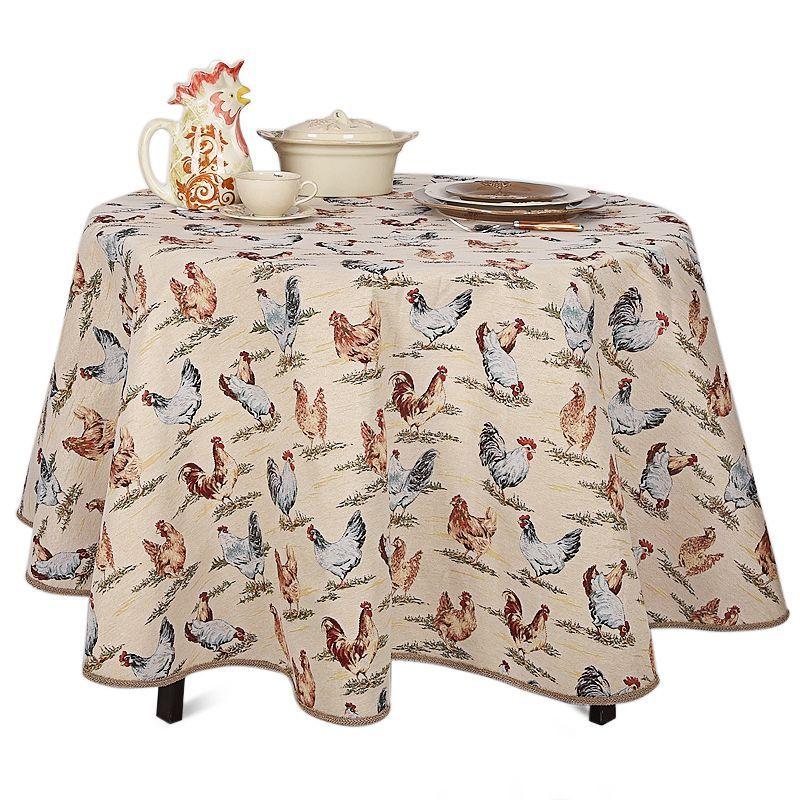 Круглая скатерть гобеленовая непромокаемая с тефлоном Двор диаметр 200 см
