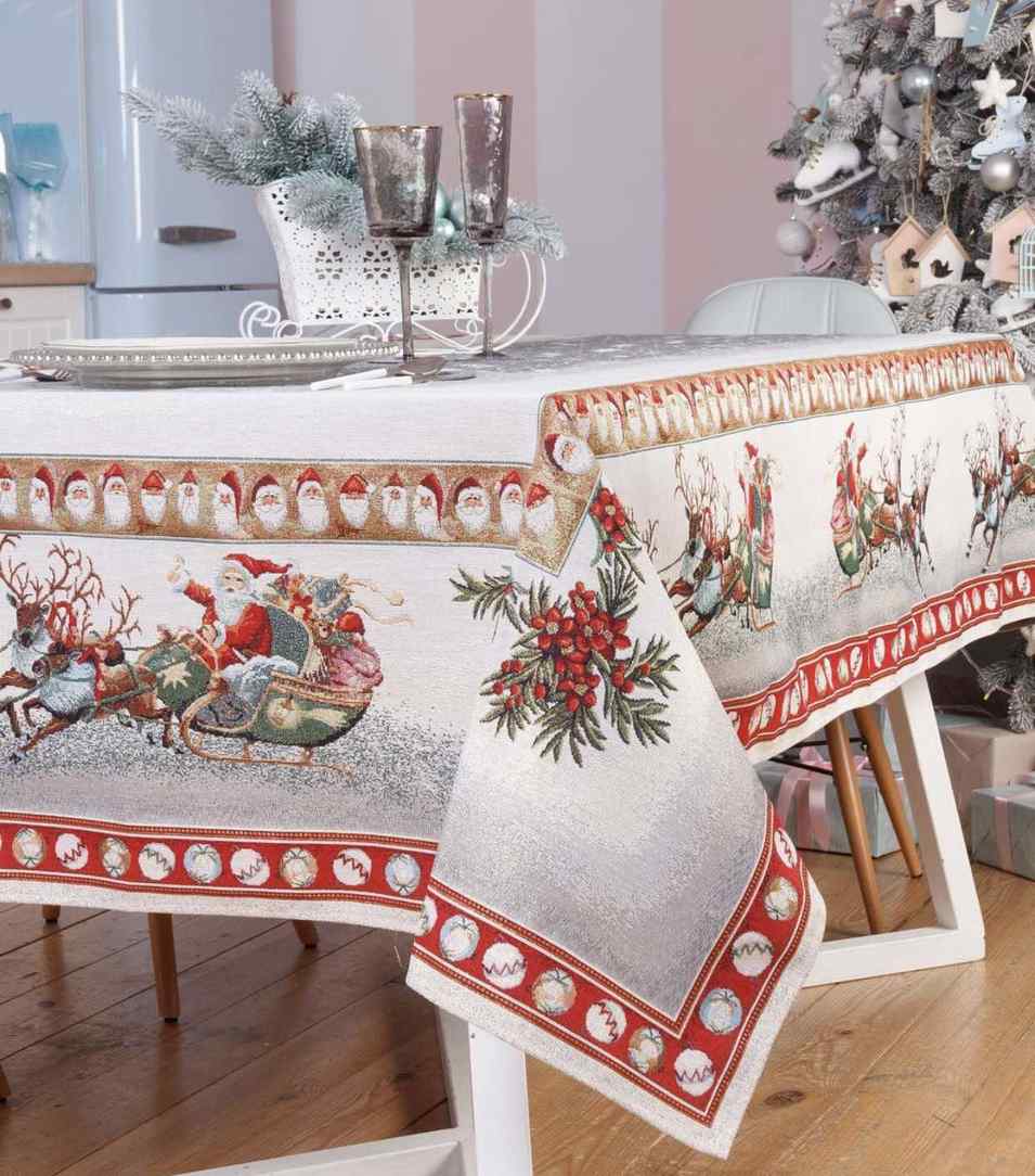 Скатерть гобеленовая новогодняя с люрексом CHRISTMAS 4 РАЗМЕРА