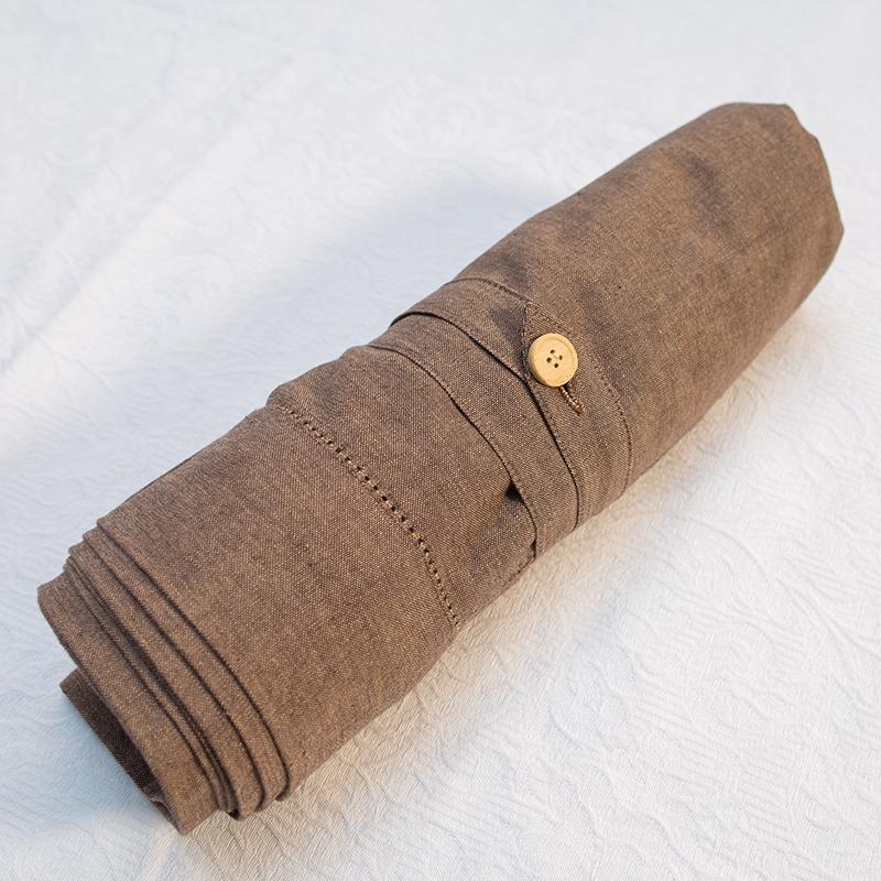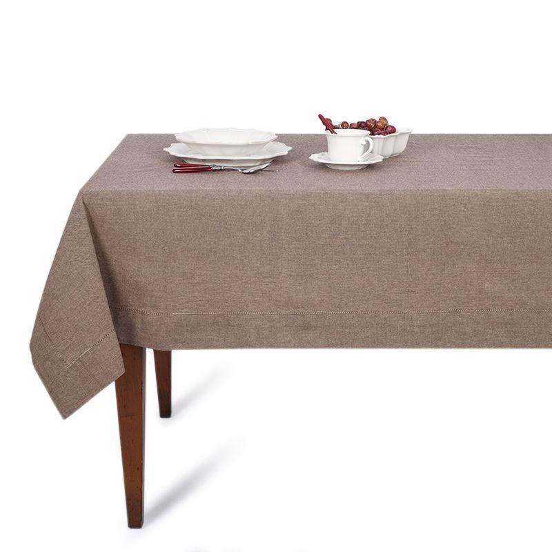 Скатерть из натурального хлопка коричневая Шамбре 140×320 см