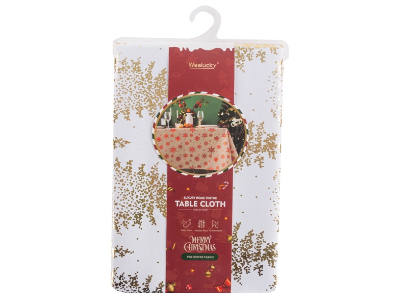 Практическая сторона также заслуживает внимания. Скатерть выполнена из полиэстера — материала, который хорошо подходит для повседневного использования и не требует сложного ухода. Она удобна в стирке, быстро высыхает и легко разглаживается. Это хорошее решение для тех, кто хочет сочетать праздничный вид с комфортом в уходе.