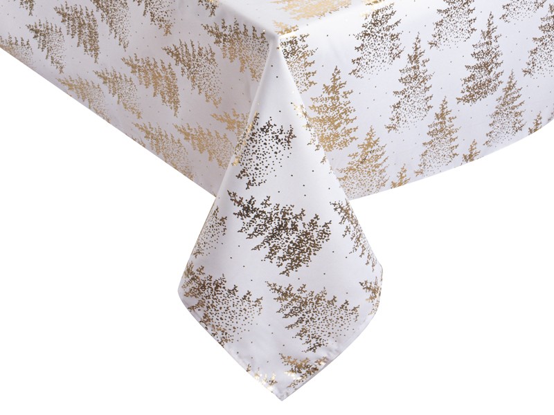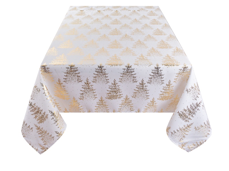Скатерти коллекции Evergreen Spark наполняют пространство атмосферой зимнего леса и праздничного уюта. Белоснежный фон с изящным узором золотых елей выглядит свежо и элегантно, напоминая о морозном утре и ожидании новогоднего чуда. Такой дизайн подойдёт как для повседневных зимних обедов, так и для торжественной сервировки праздничного стола.