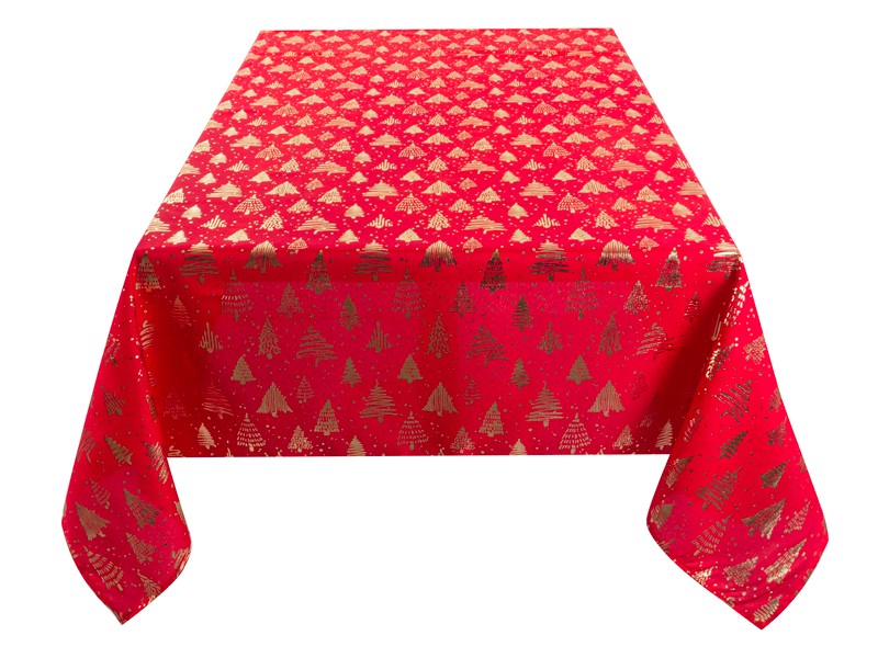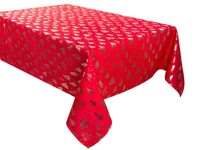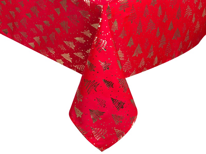 Скатерти коллекции Evergreen Spark наполняют пространство атмосферой зимнего леса и праздничного уюта. Красный фон с изящным узором золотых елей выглядит свежо и элегантно, напоминая о морозном утре и ожидании новогоднего чуда. Такой дизайн подойдёт как для повседневных зимних обедов, так и для торжественной сервировки праздничного стола.
