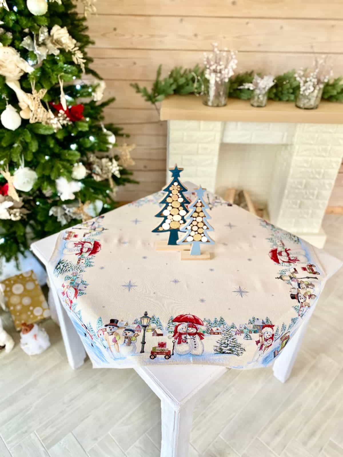 Скатерть квадратная новогодняя гобеленовая Снеговик- баловник 97х100 см