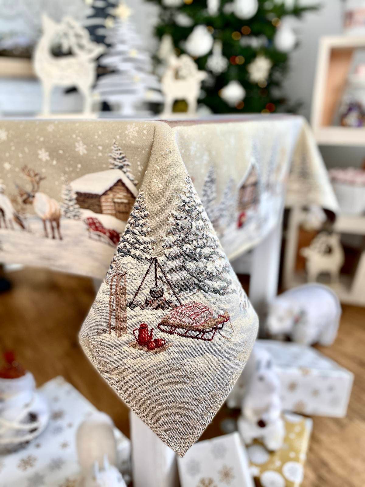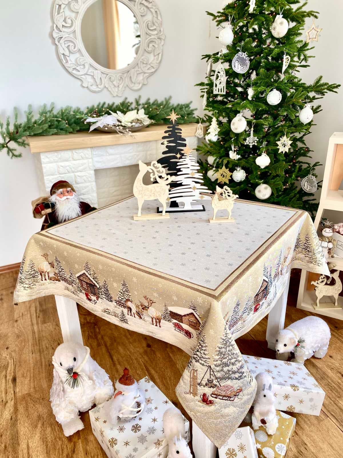 Скатерть новогодняя гобеленовая "Домик Санты", 137х280 см