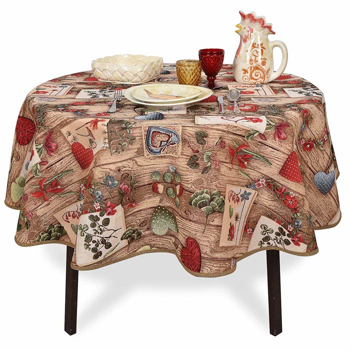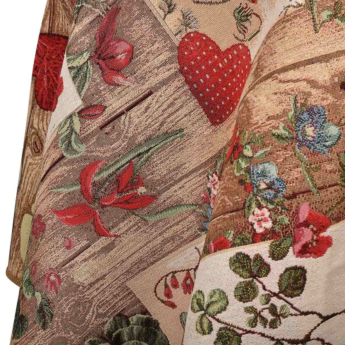 Яркий самобытный кантри – идеальное решение, чтобы добавить аутентичную нотку в уютный интерьер. Гобеленовая скатерть с оригинальным рисунком создает иллюзию дощатого стола, на котором разбросаны милые романтические приветствия. Многоцветная картина соткана из тысяч нитей разного оттенка, поэтому все тонкости переданы с совершенной четкостью.