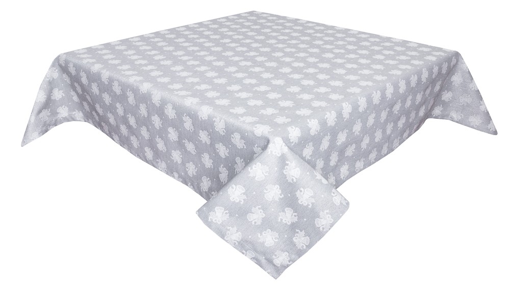 Скатертина сіра двостороння жакардова 137х180 см з візерунком