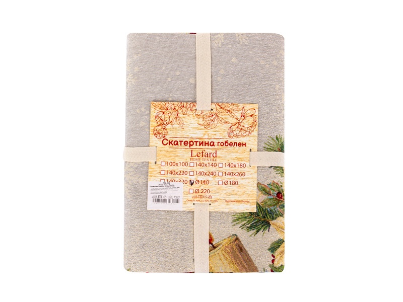 Кожен елемент зображення ретельно пропрацьований — гобеленова тканина підкреслює об’єм і глибину кольорів, надаючи виробу вишуканого вигляду. Така скатертина не лише прикрашає інтер’єр, а й створює святкову атмосферу, збираючи всю родину за одним столом. Її дизайн нагадує затишні різдвяні вечори у домівках Європи, наповнені світлом свічок та ароматом хвої.