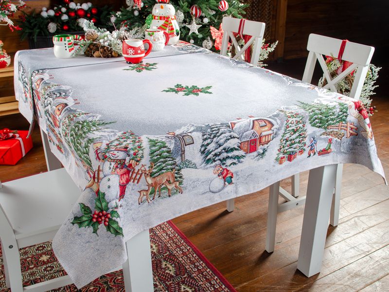 Скатертина гобеленова новорічна COTTAGE 140х140 см 4 РОЗМІРИ