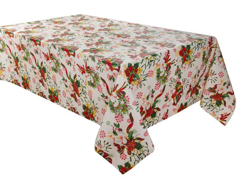 Колекція скатертин Guest — це ідеальне рішення для створення святкової та затишної атмосфери в оселі. На світлому тлі розкриваються яскраві різдвяні мотиви: червоні пуансетії, зелені ялинкові гілки та витончені сніжинки. Така скатертина миттєво змінює інтер’єр, роблячи сервірування яскравим і святковим.