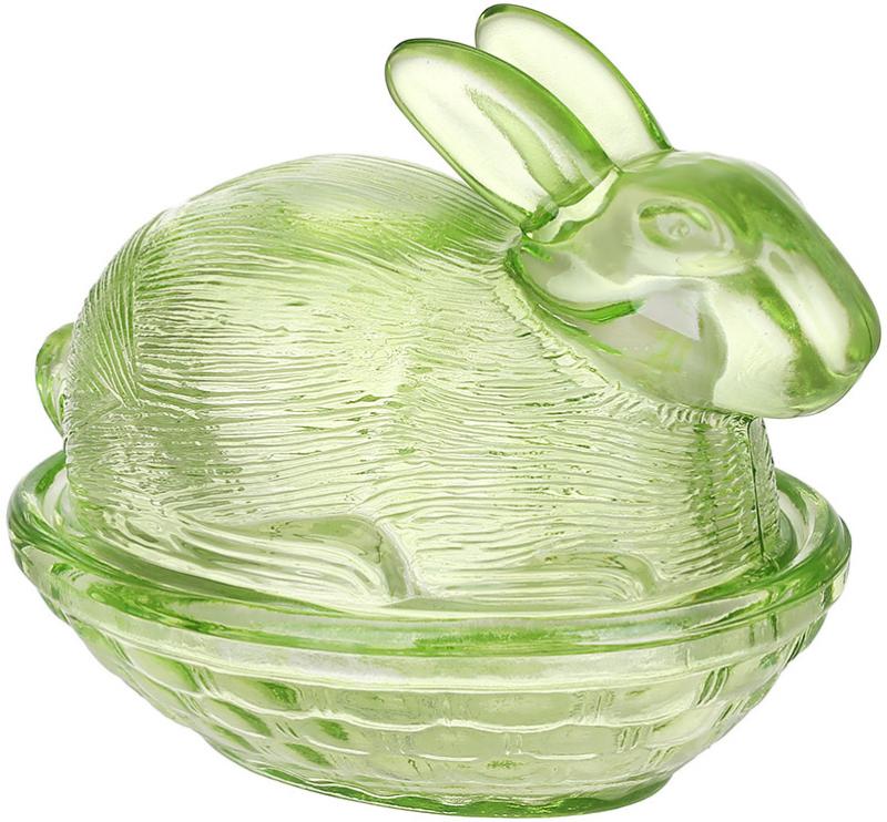 Скляна ємність з кришкою зелена для солодощів Кролик 14х10х11см