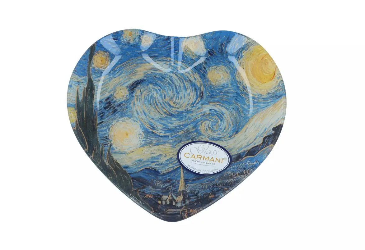 Скляна тарілка-серце Carmani Ван Гог Зоряна ніч 18х19 см