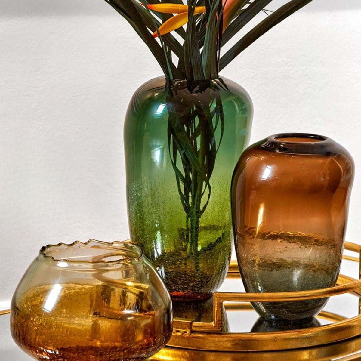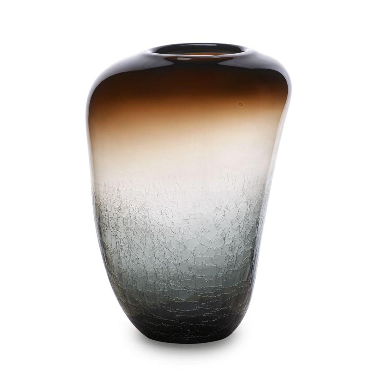 Ця скляна ваза для квітів має розмір 19×27 см і відрізняється витонченим дизайном з плавним переходом кольорів. Верхня частина вазы виконана у темно-коричневому відтінку, який переходить у світліший прозорий тон із текстурним ефектом, додаючи вазі унікальності та елегантності. Нижня частина має легкий сірий відтінок, що завершує градієнтну палітру. Така ваза стане стильним акцентом в інтер’єрі, поєднуючи в собі сучасність і природні відтінки, ідеально підходить для оформлення квіткових композицій або як самостійний елемент декору.