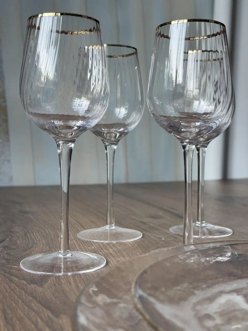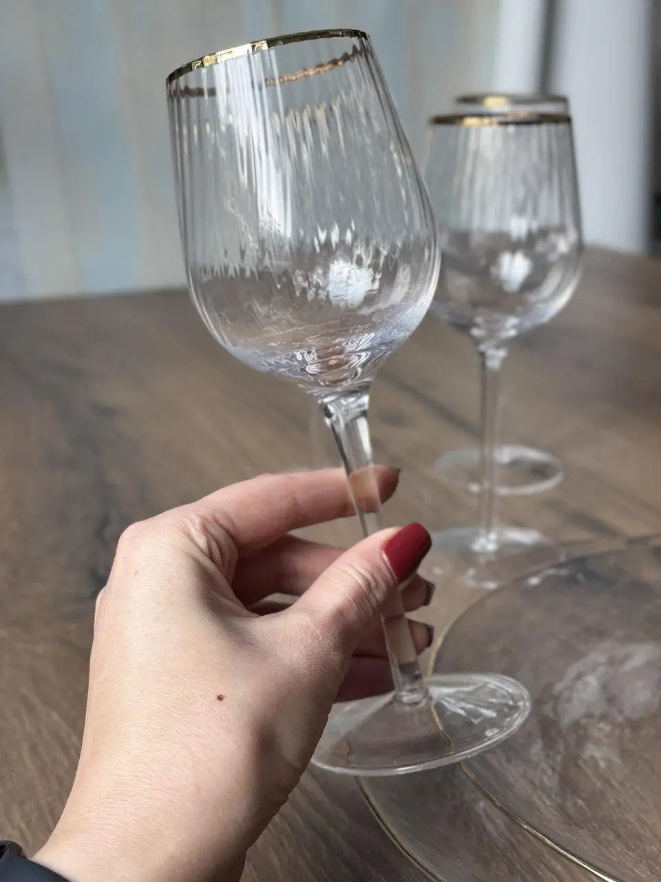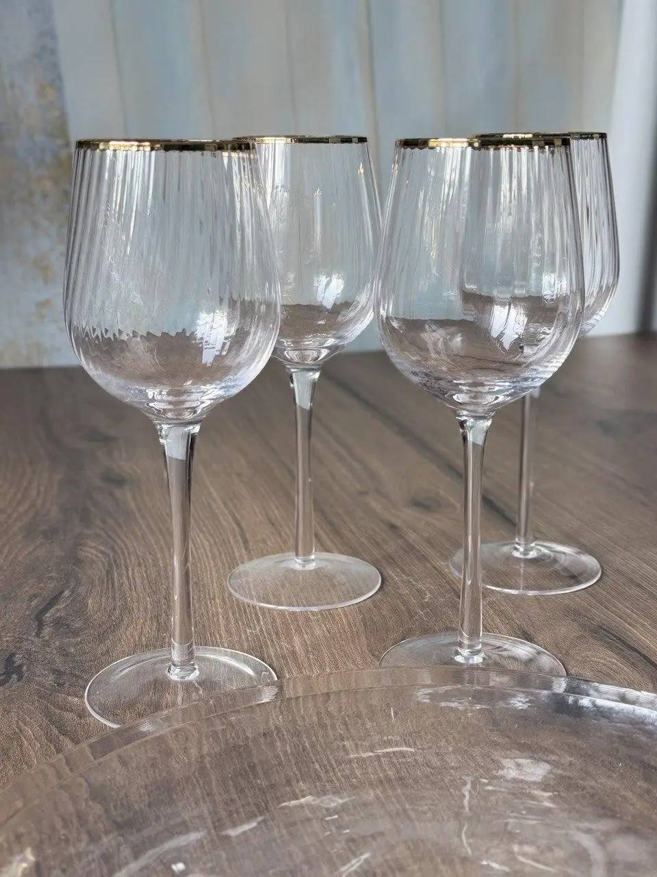 Верхній кант келиха оздоблений тонкою золотою лінією. Вона додає елегантності, але не перебільшує. Це саме той акцент, який доречно виглядає і на святковому столі, і в повсякденному сервіруванні.