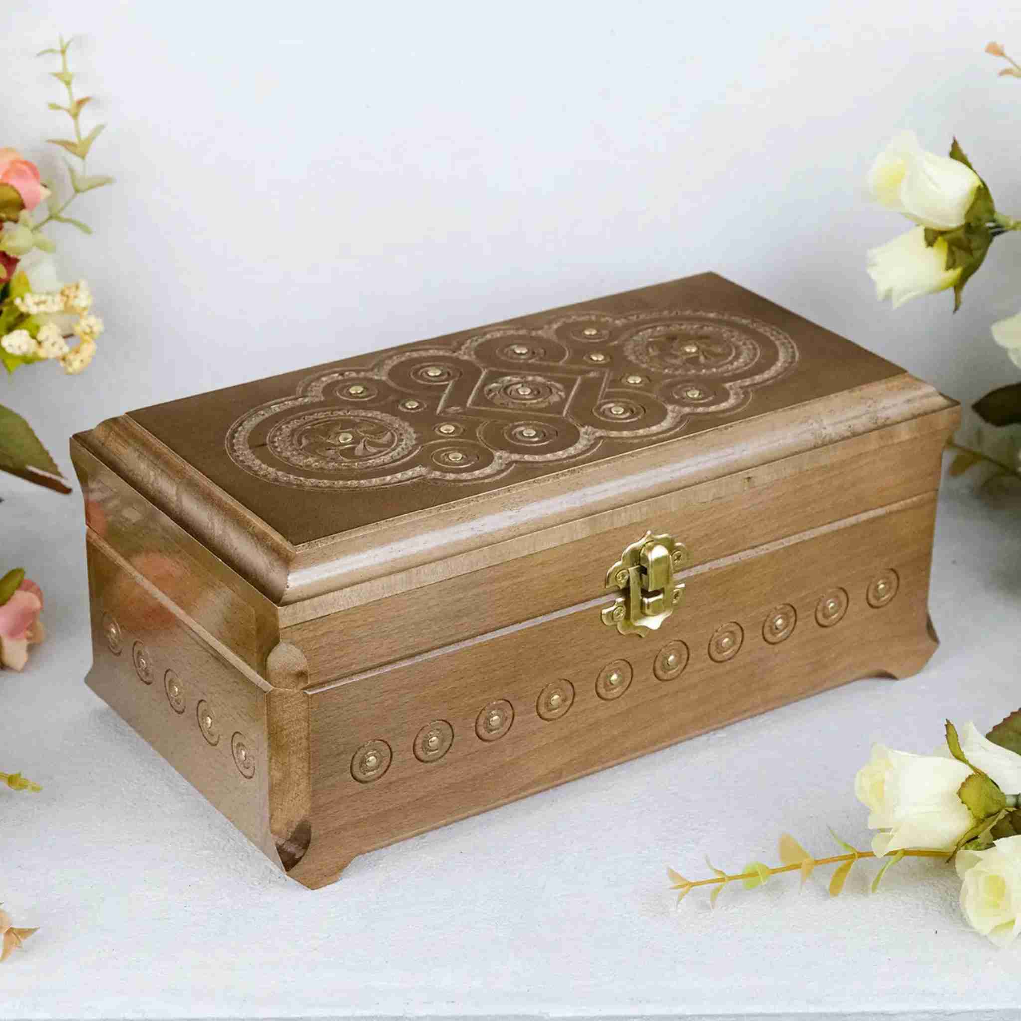 Скринька дерев'яна різьблена коричнева Різна Елегія 24*12 см