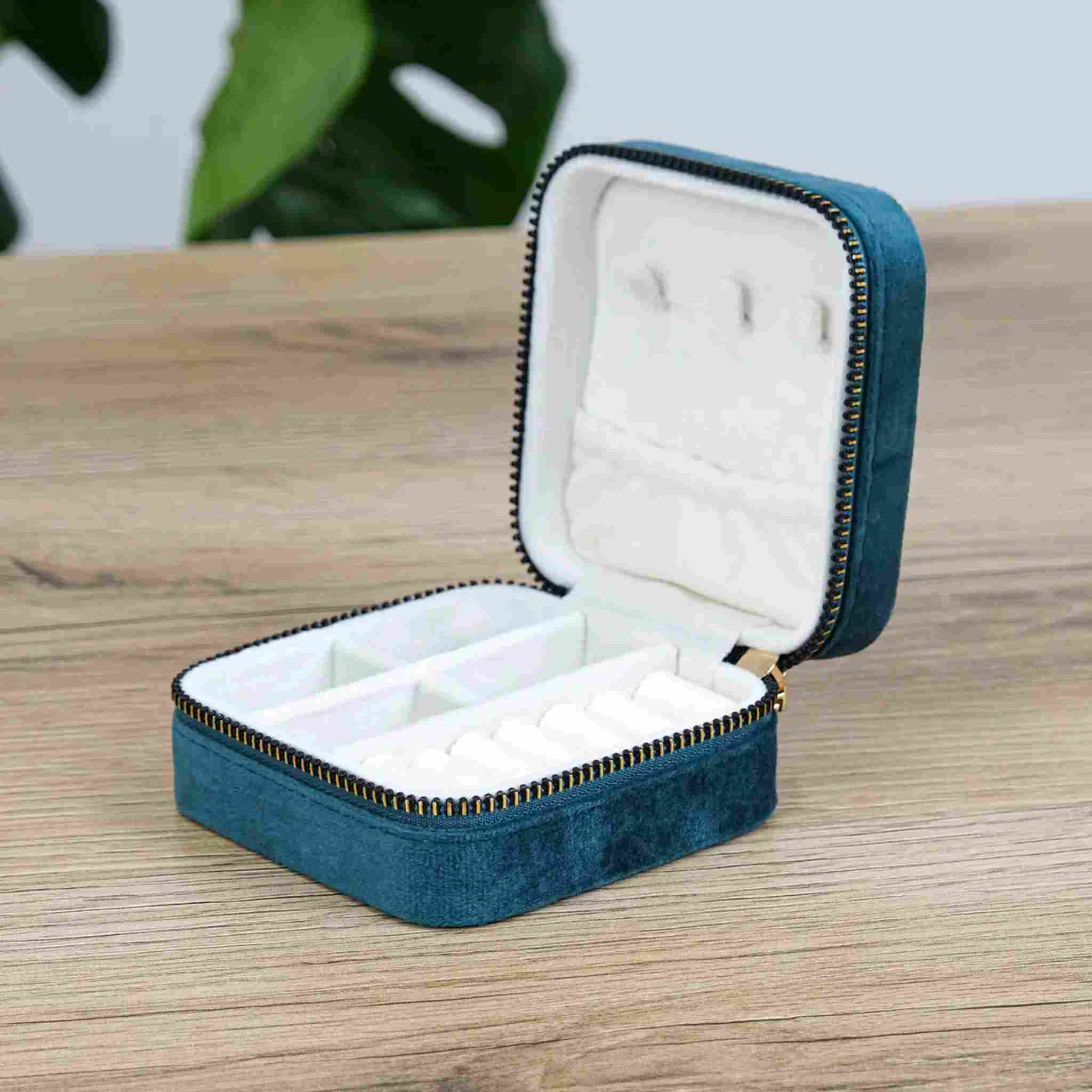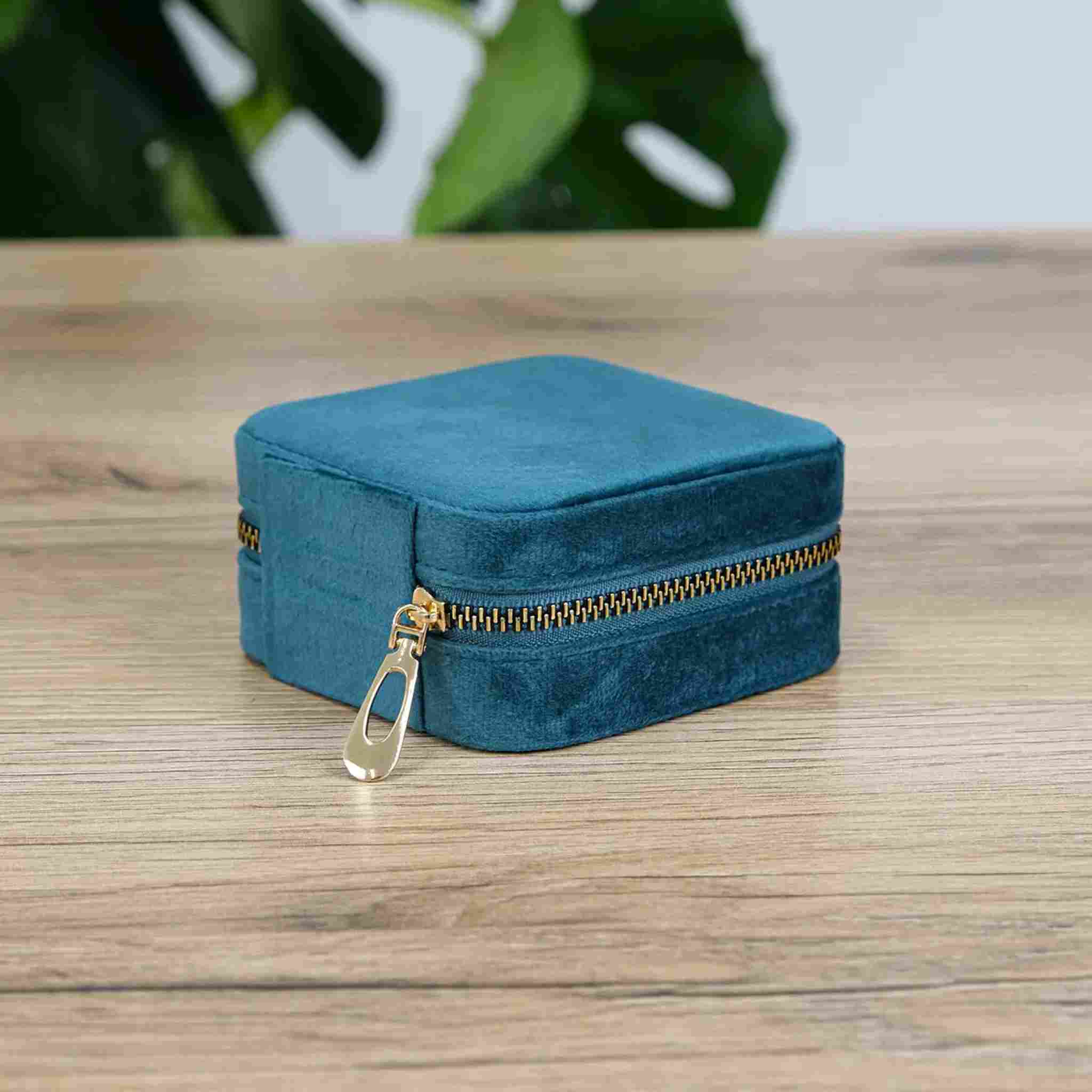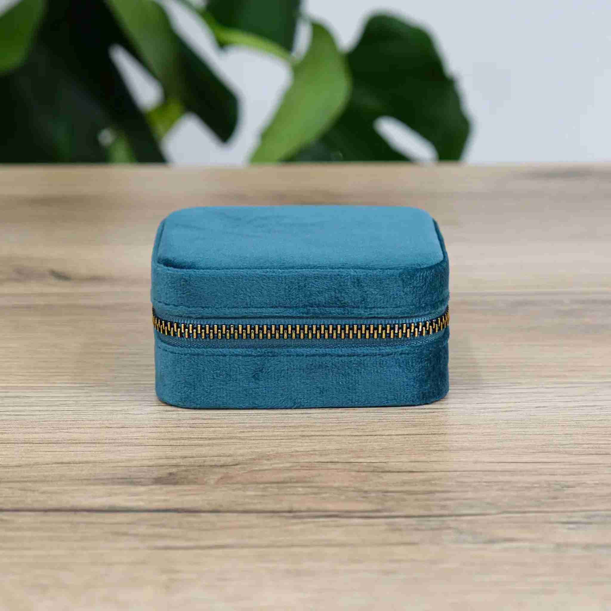 Скринька для прикрас блакитна дорожня велюр Velvet Travel Case 10×10×5 см