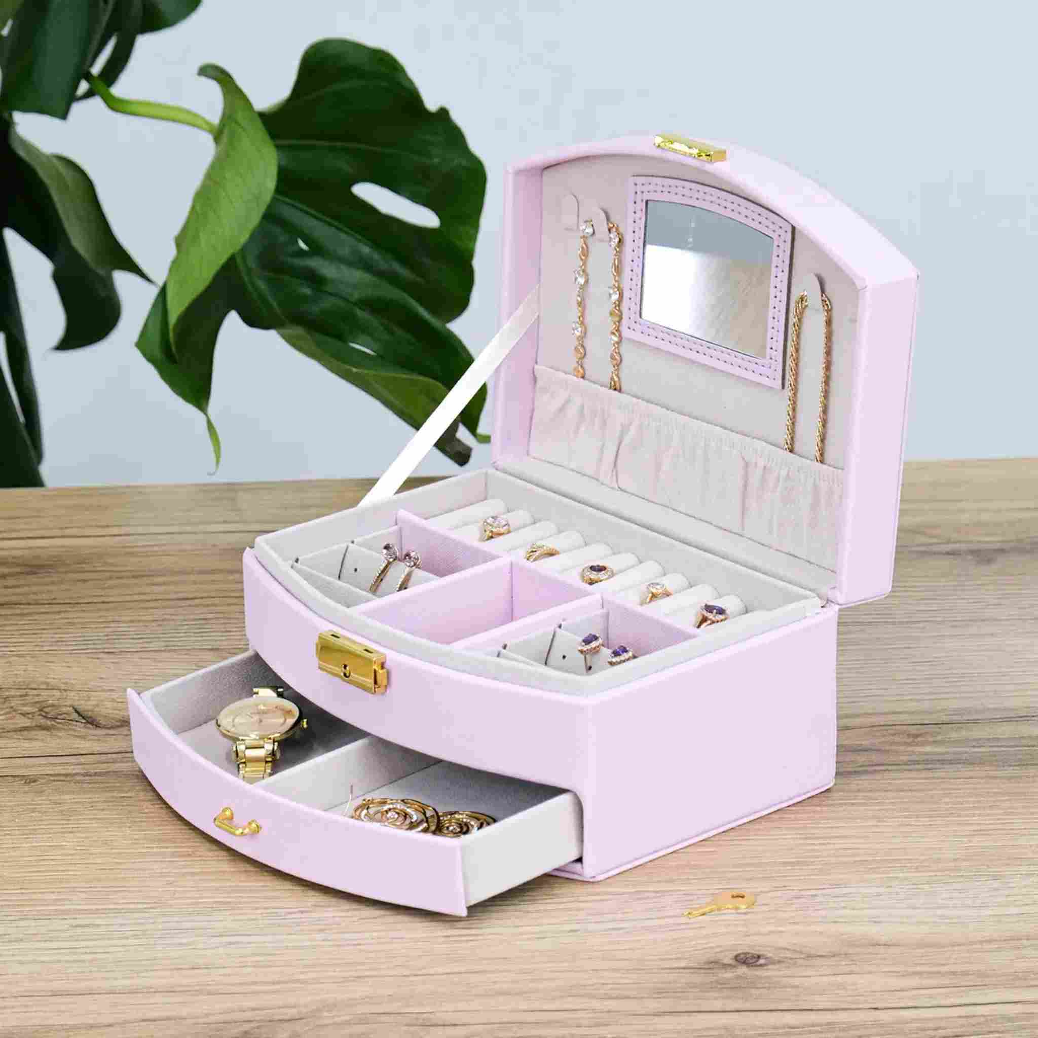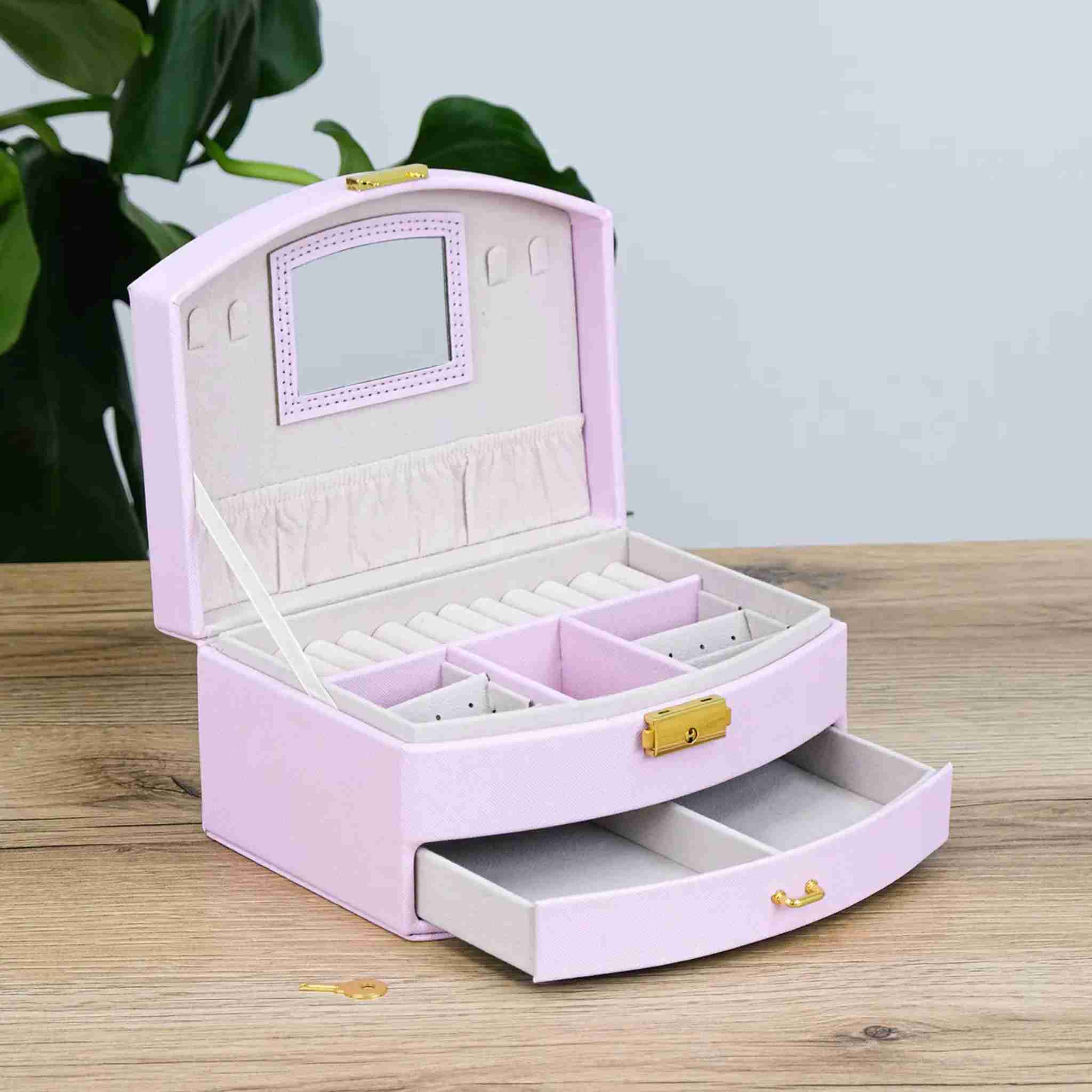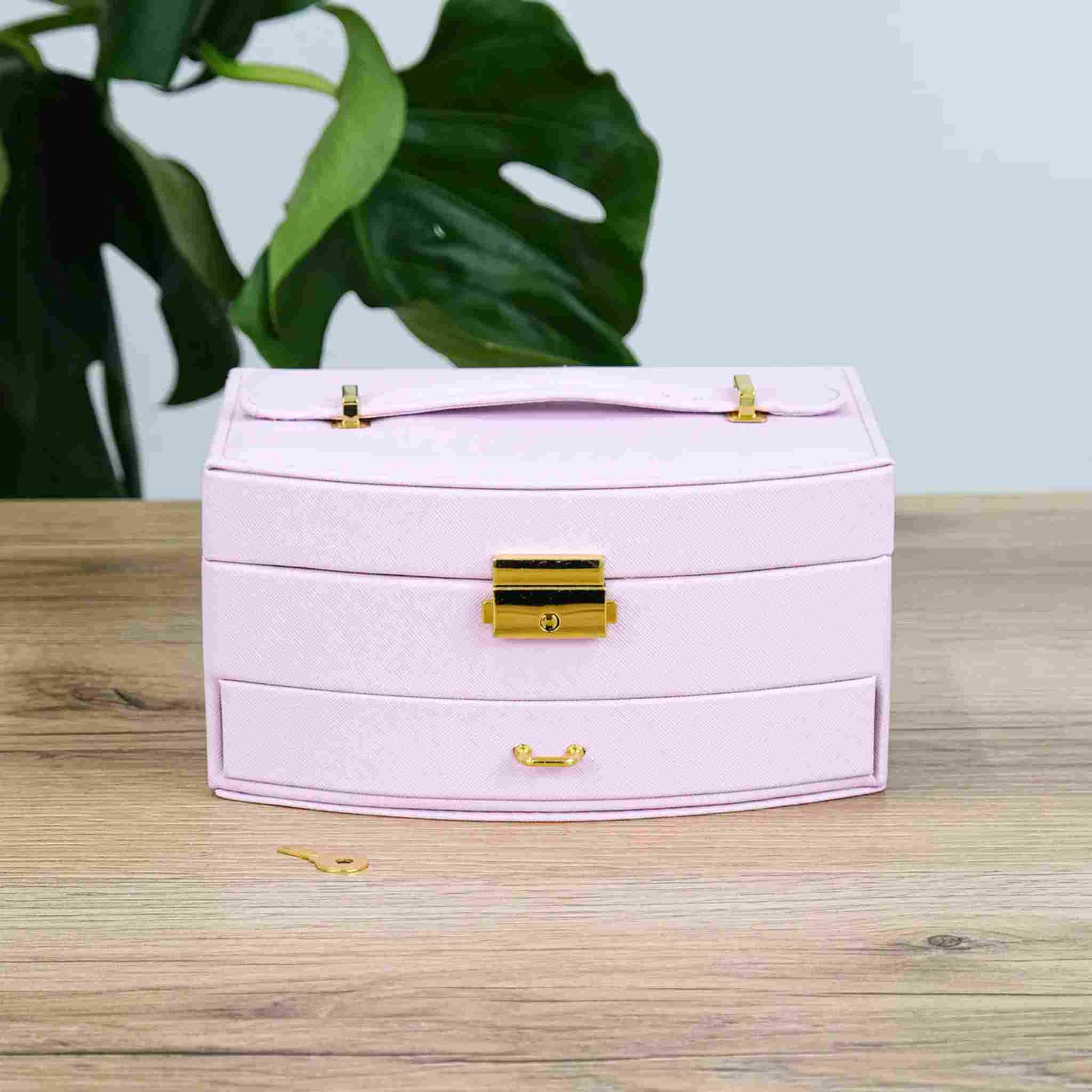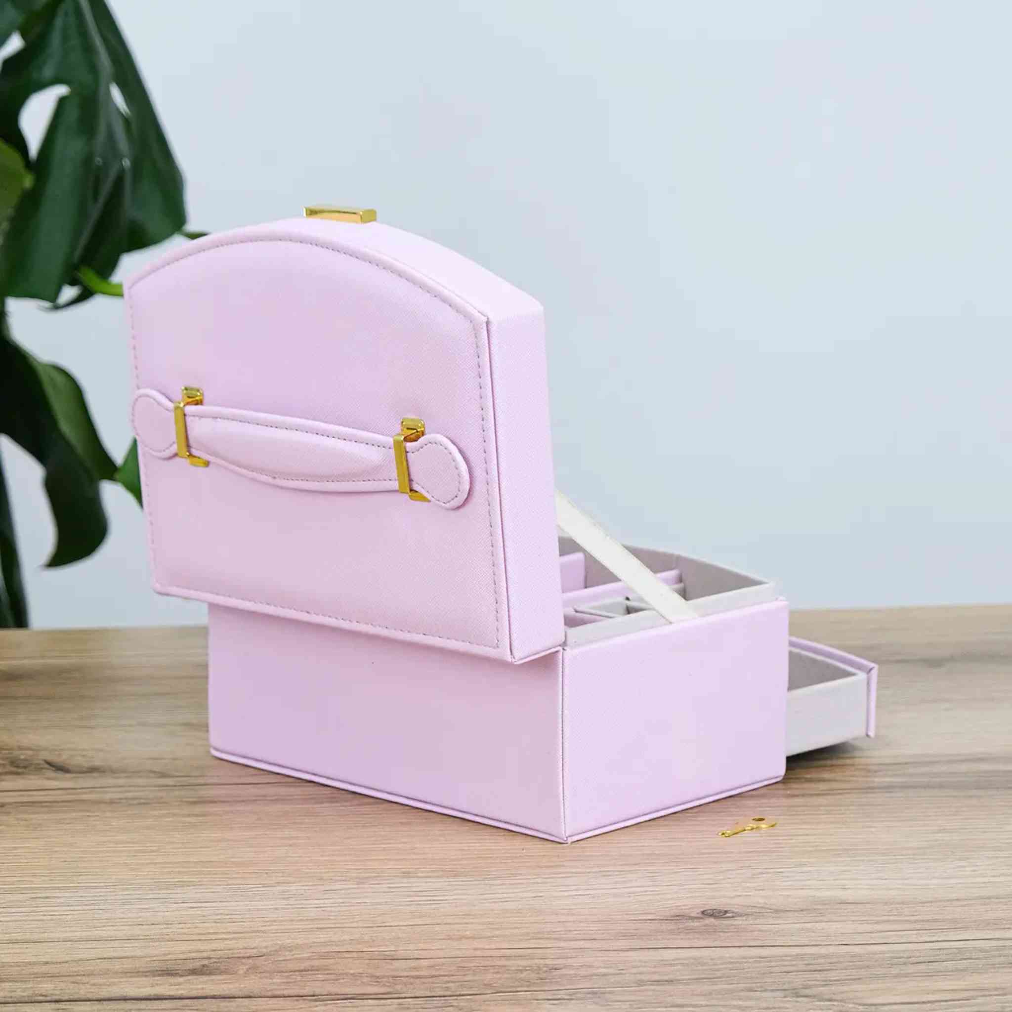 Шукаєте витончену та практичну скриньку для зберігання улюблених прикрас? Ця чарівна рожева модель стане не лише зручним органайзером, а й гармонійним доповненням до інтер’єру. Виготовлена з якісної екошкіри, вона має приємну текстуру та виглядає акуратно й дорого.